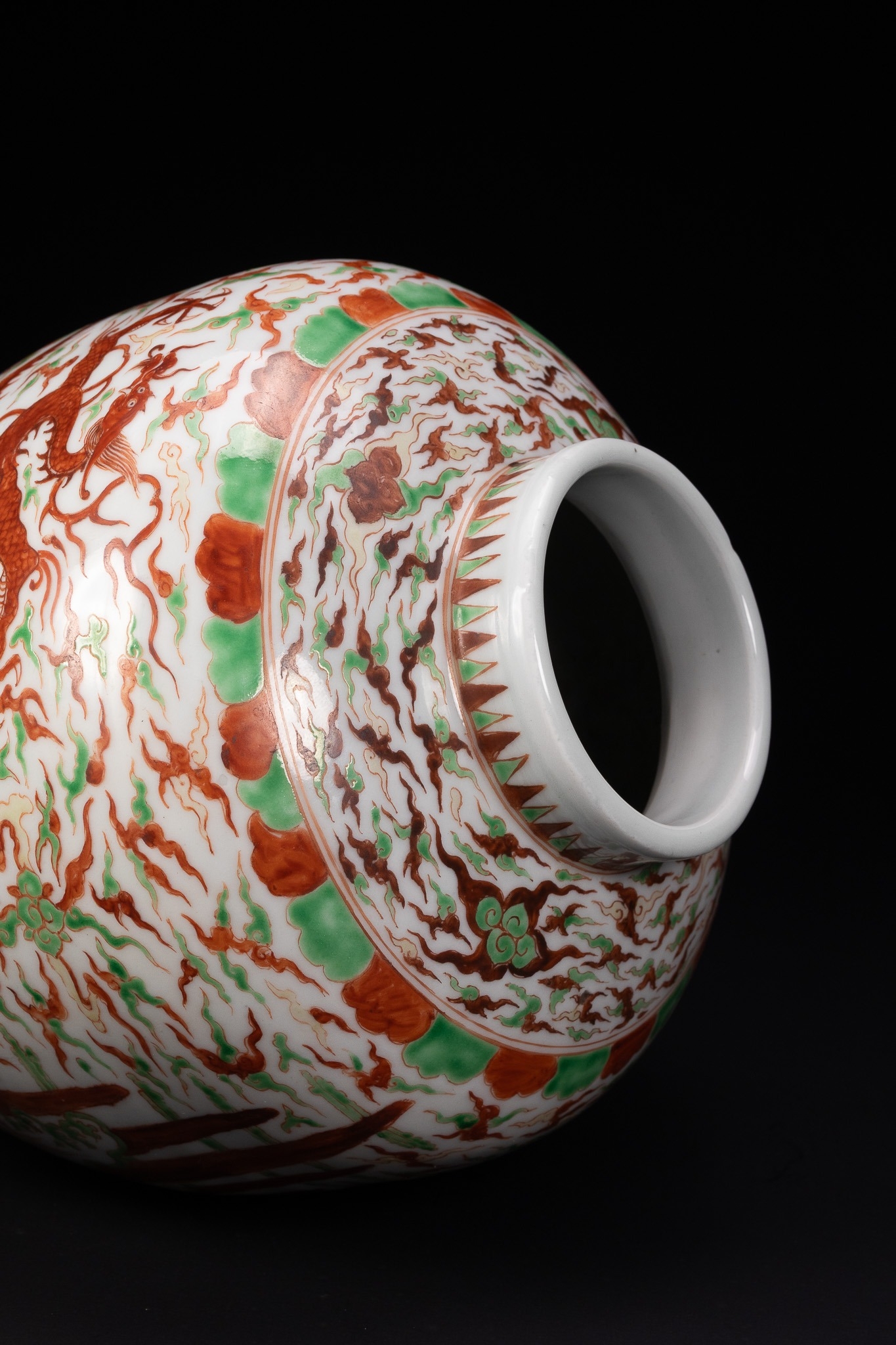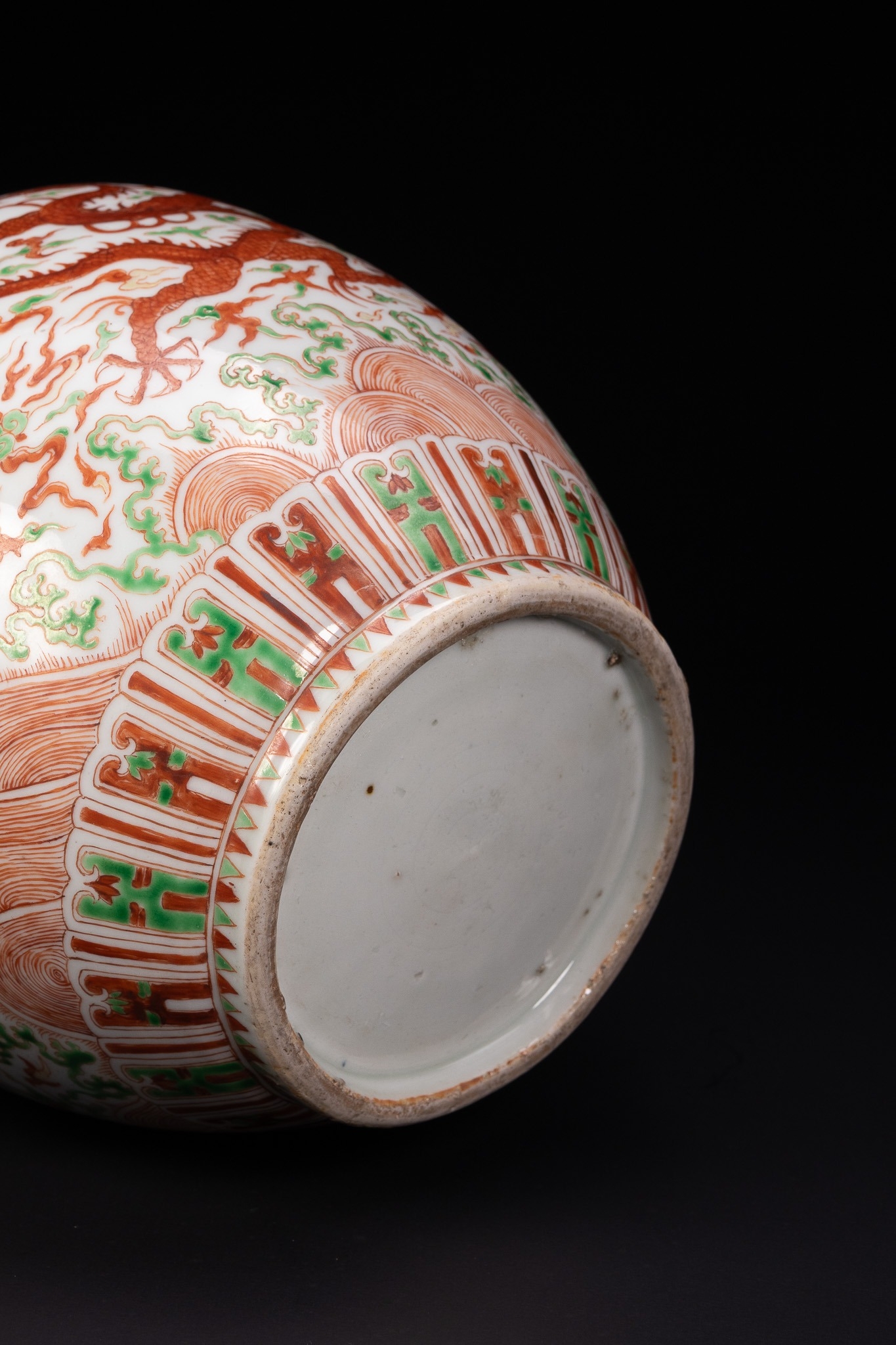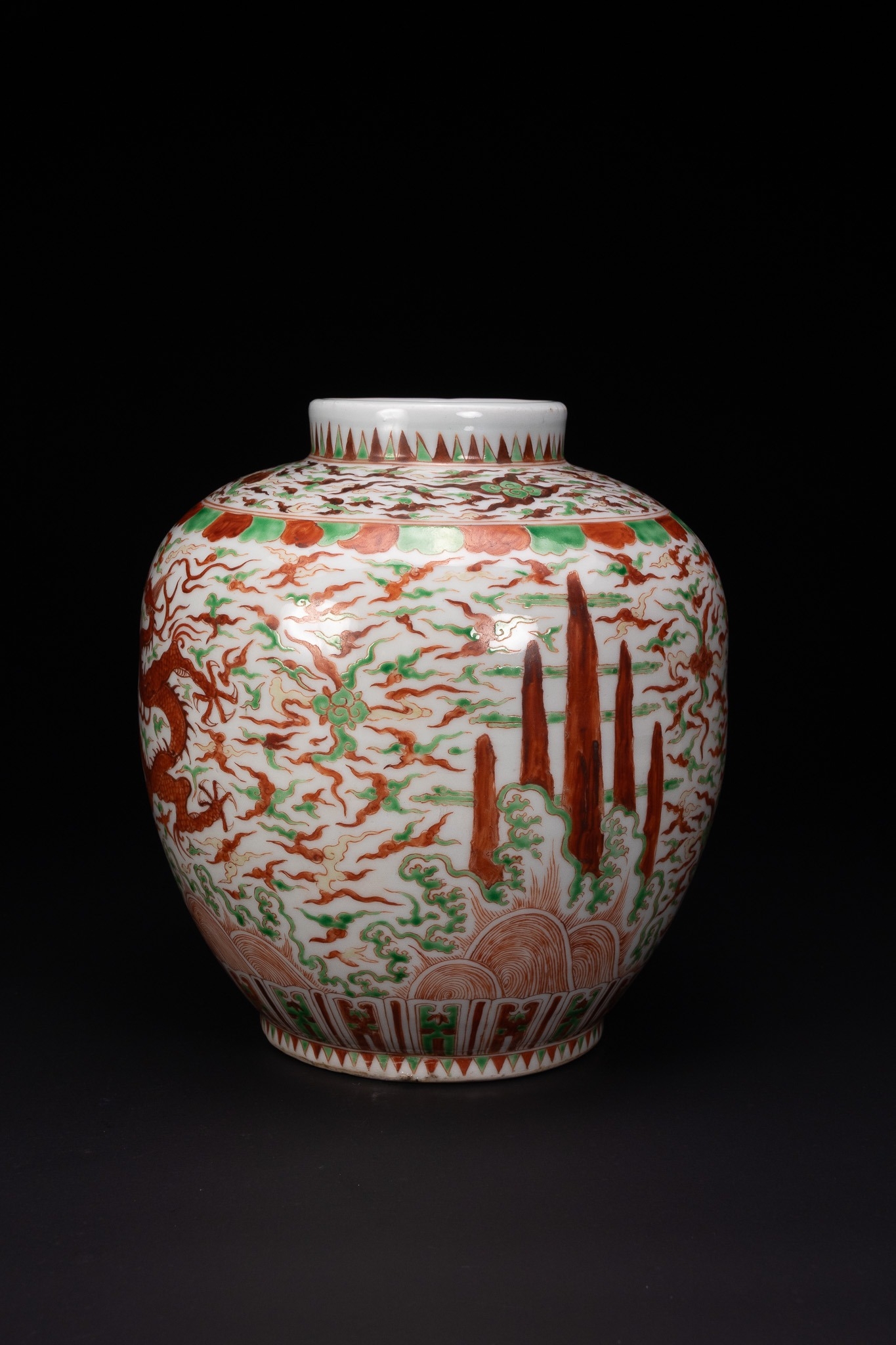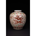 A CHINESE IRON-RED AND GREEN ENAMELLED DRAGON JAR. -