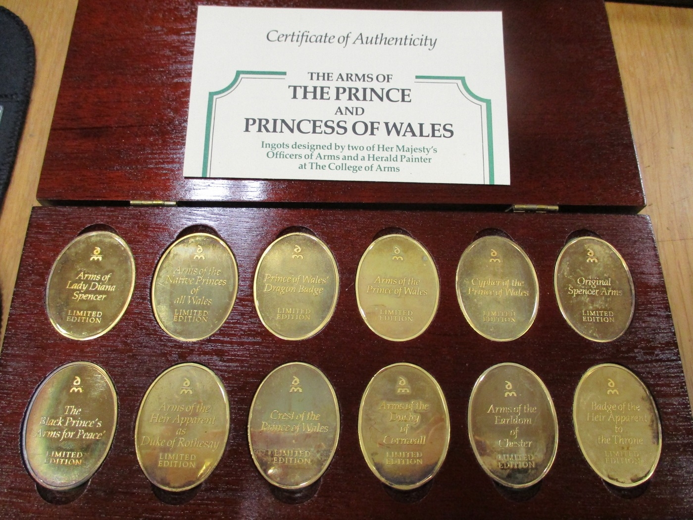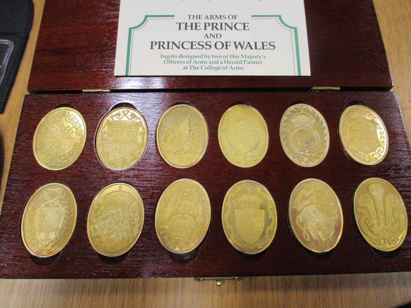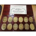 Boxed cased set of 12 with 'The Arms of The Prince and Princess of Wales' silver plated proofs from the Danbury Mint and unboxed silver plated proofs (12). (T)