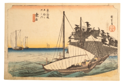 UTAGAWA HIROSHIGE I (1797-1858) Kuwana, from the series of The Fifty-Three Stations of the Tokaido Road 1833-1834, woodblock print on paper, 24.5cm x 37cm.