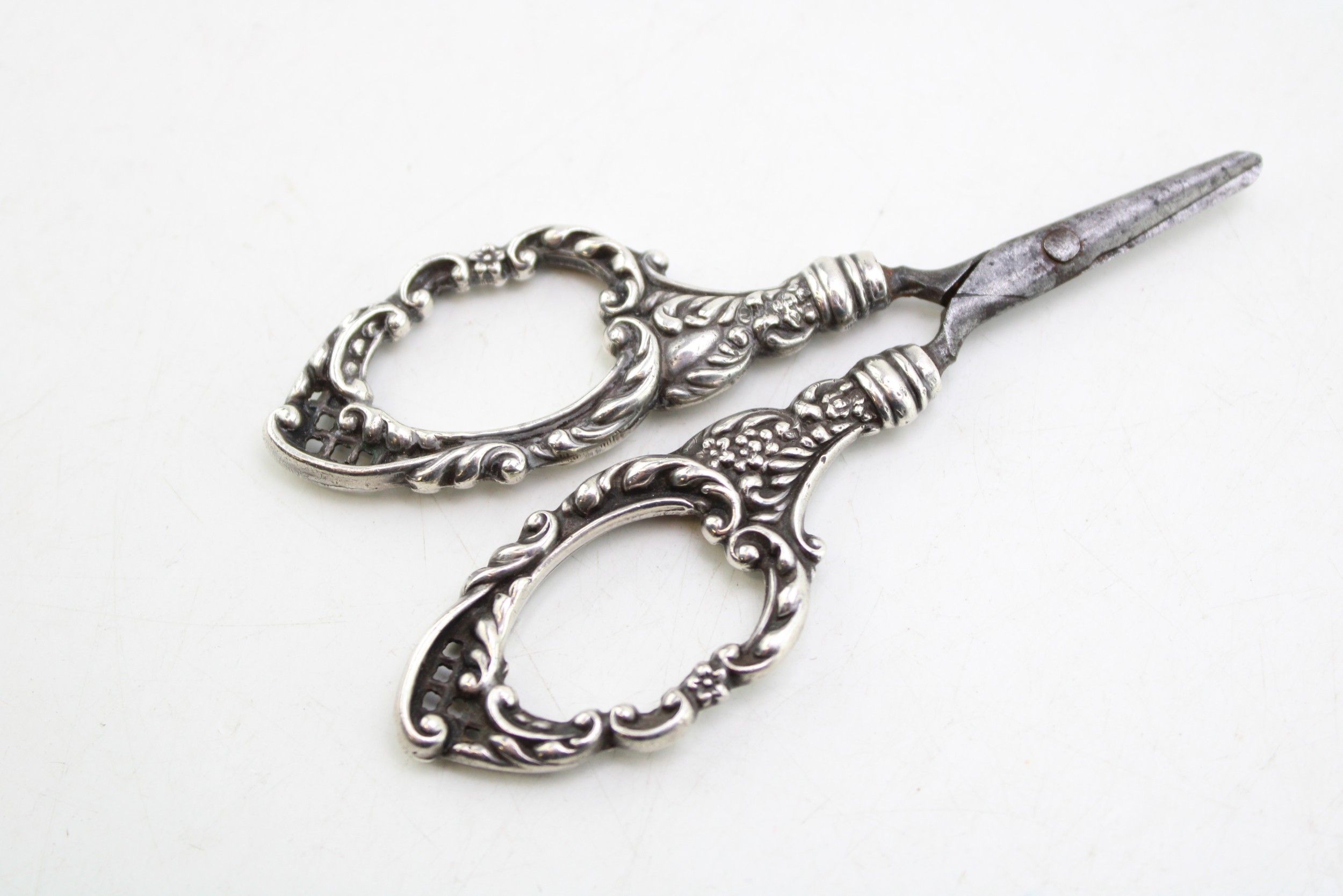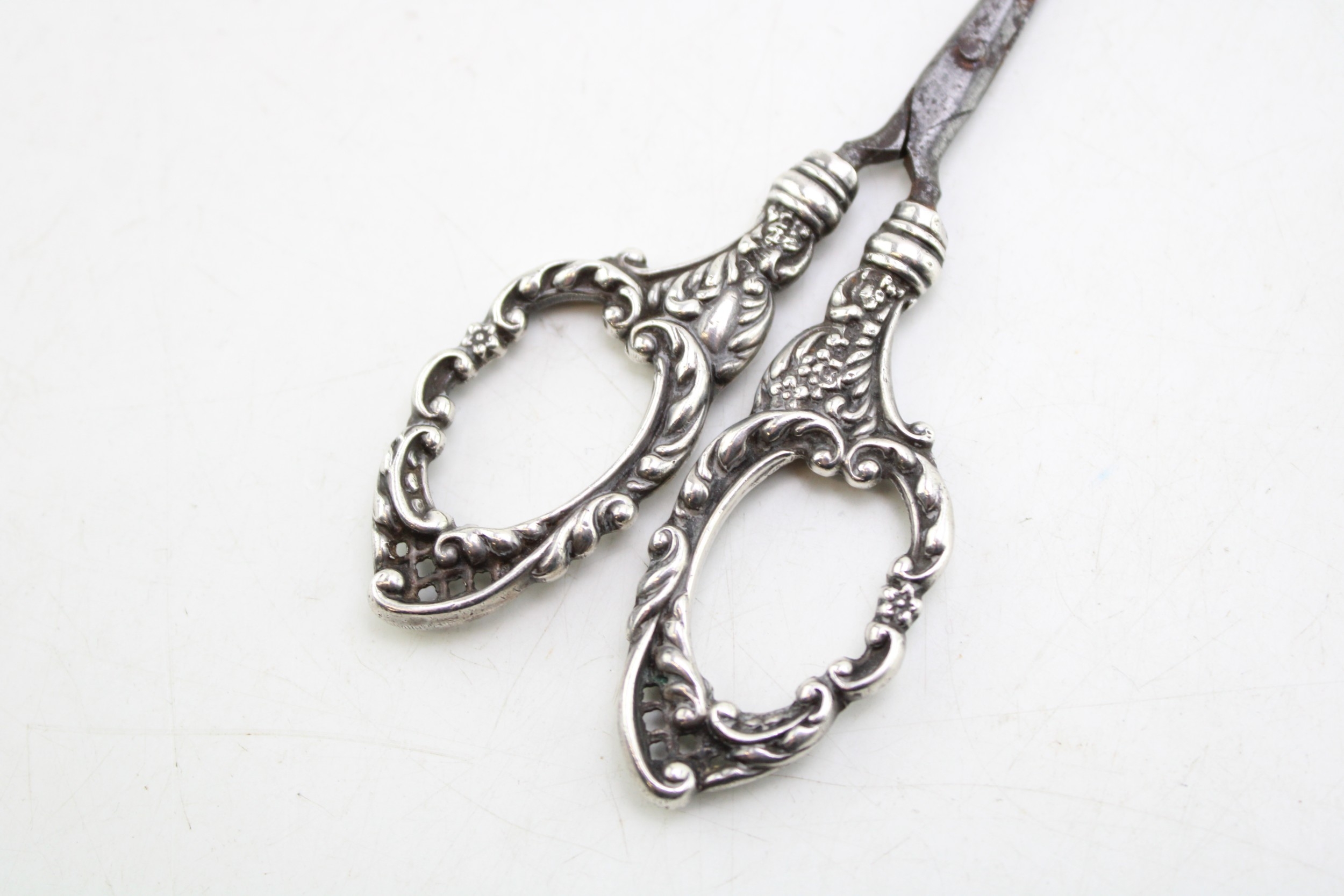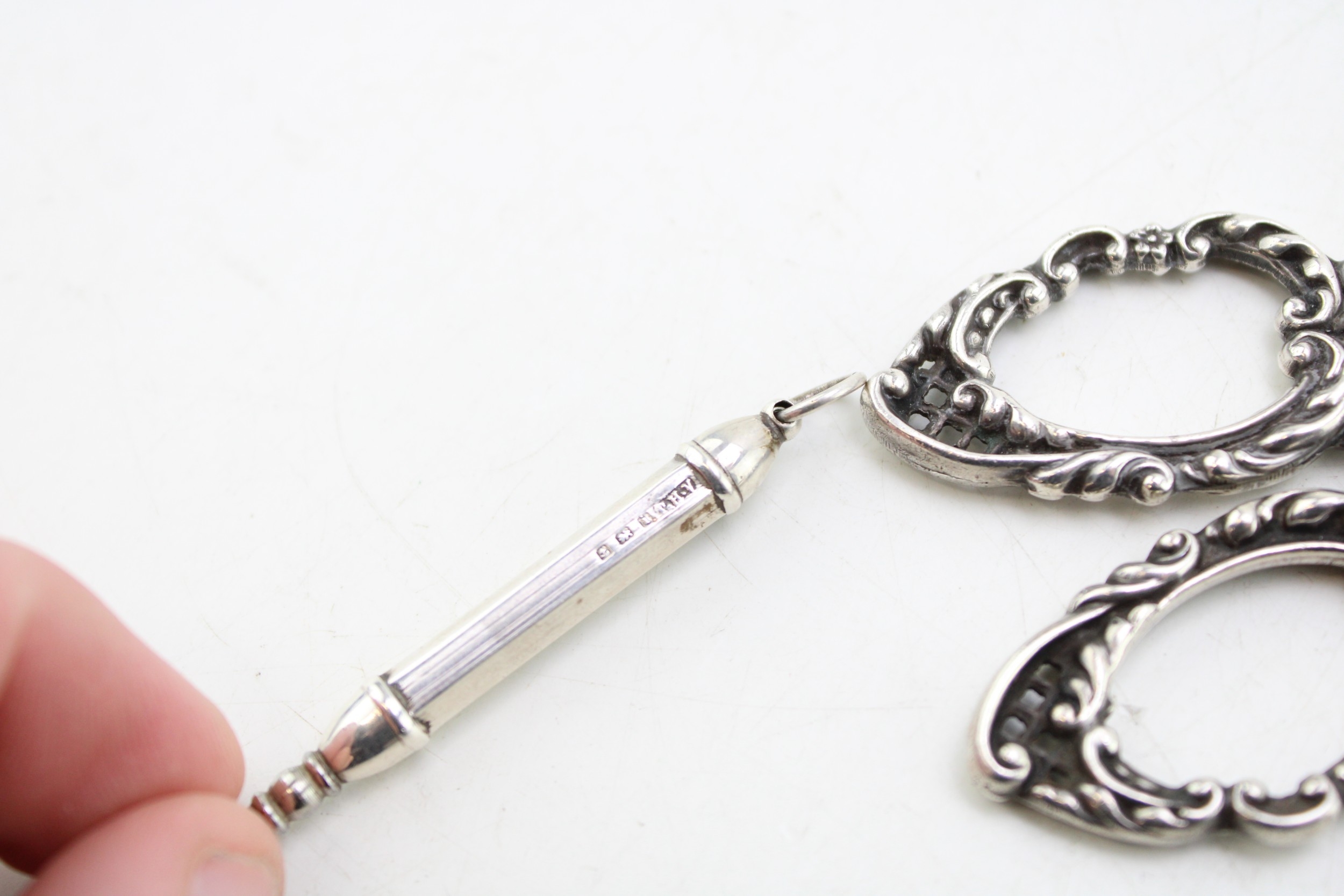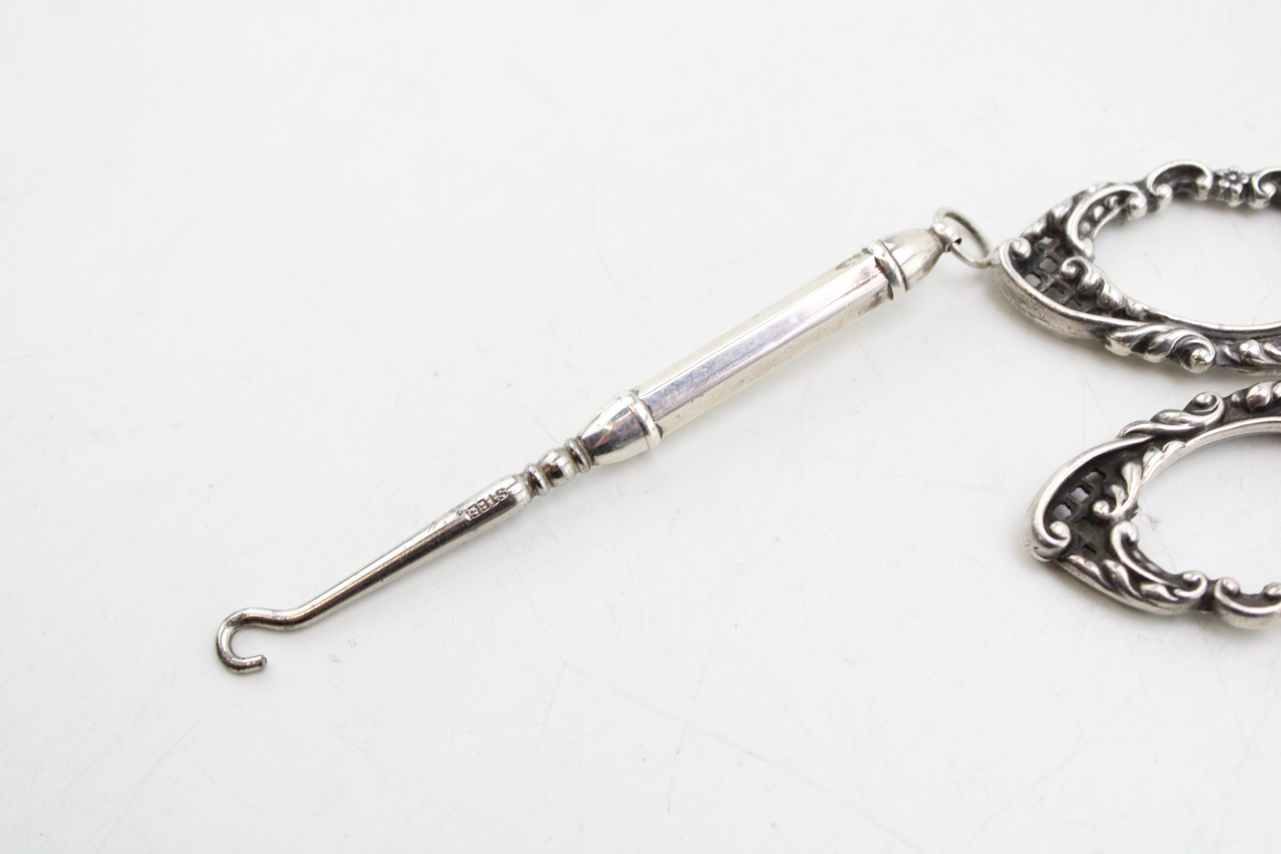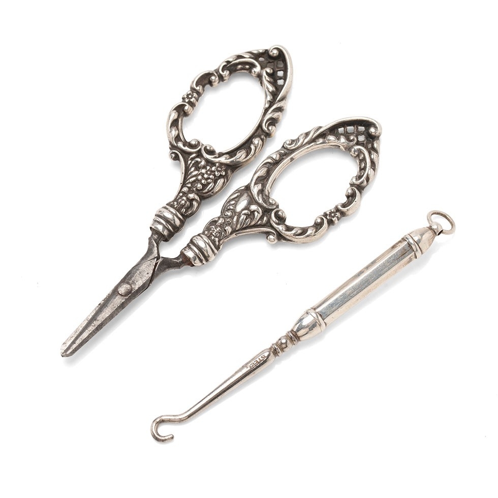 Silver miniature buttonhook, with steel button hook, silver handled scissors, Birmingham 1900 (2).