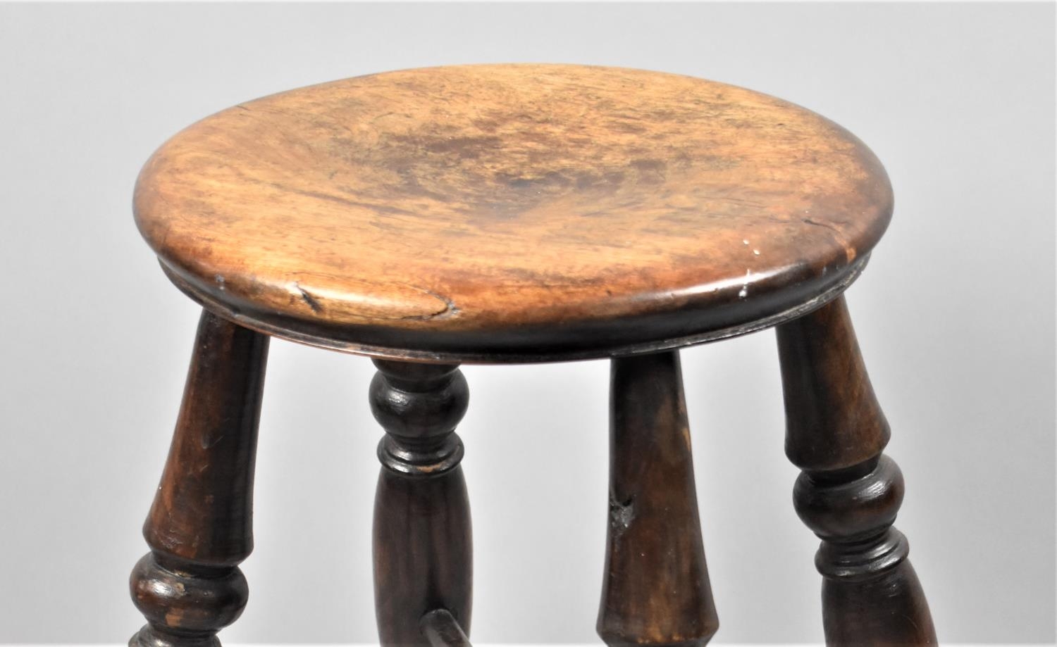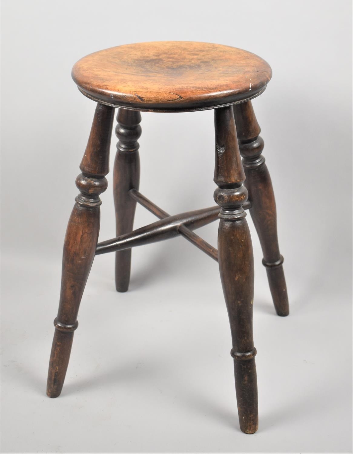 A Vintage Circular Topped Four Legged Stool with Splayed Turned Supports, 51cm high