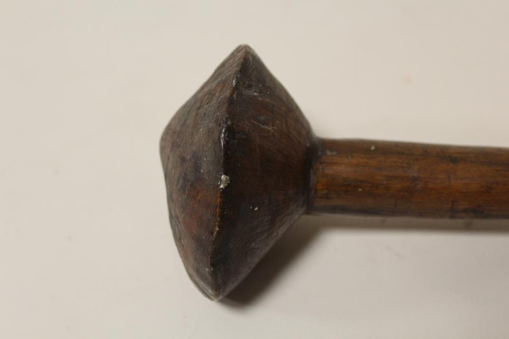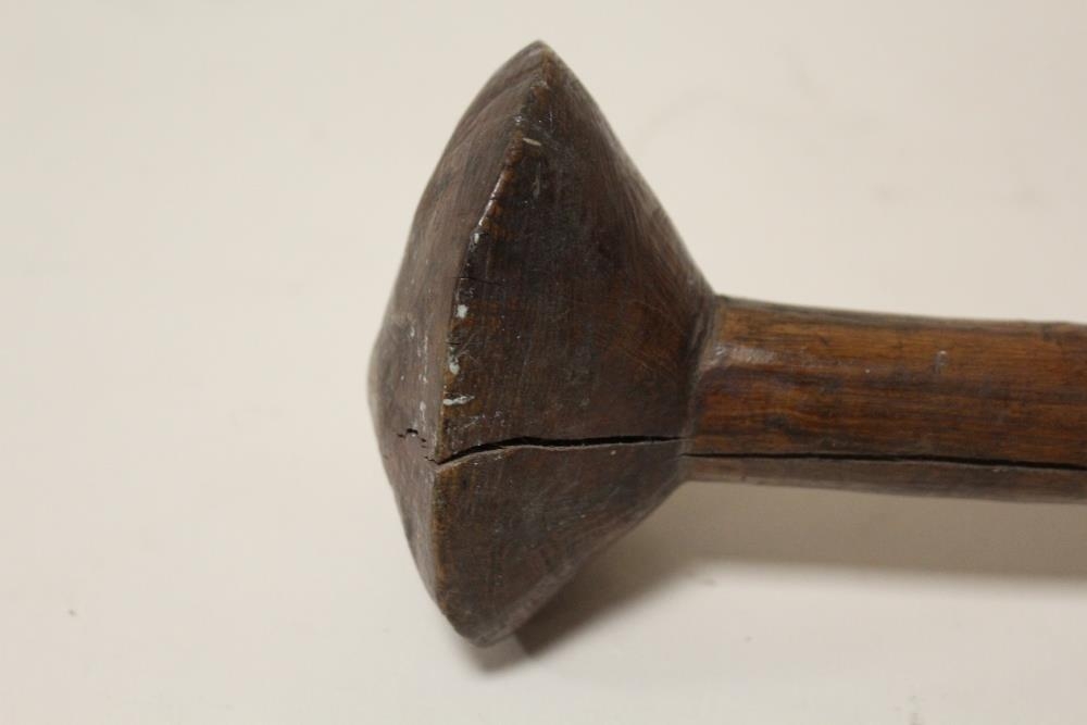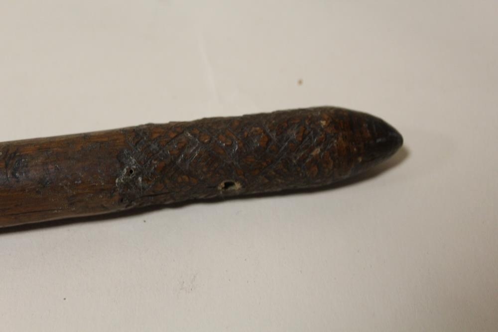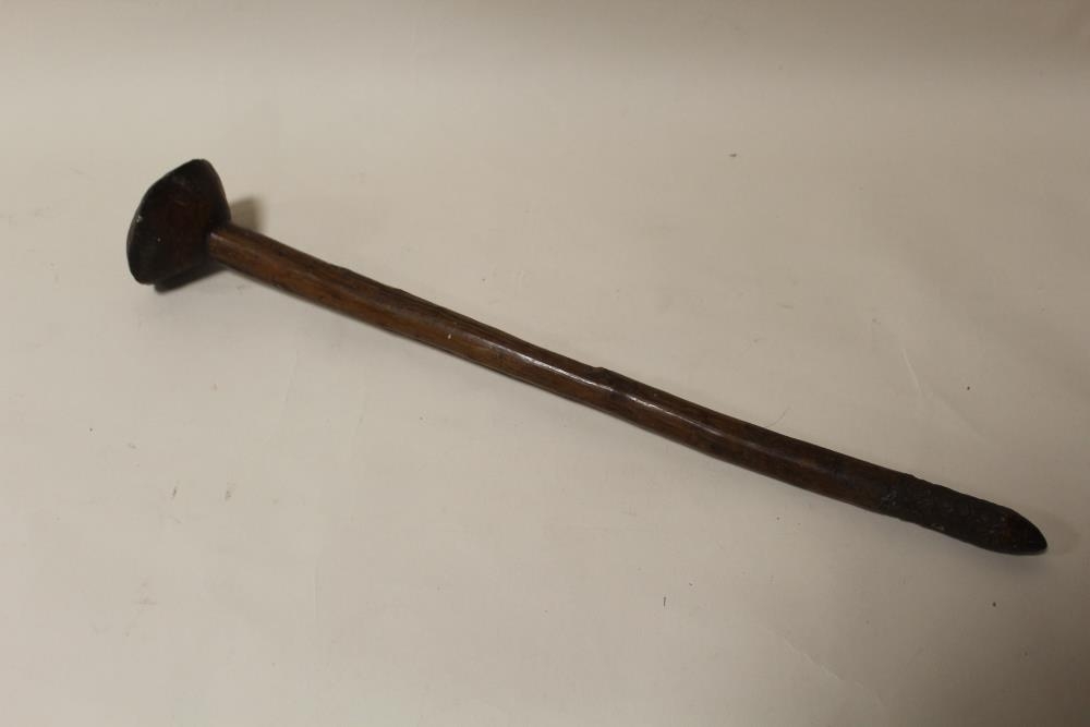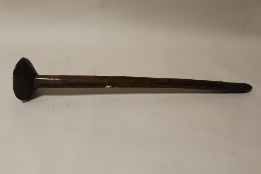 A VINTAGE AUSTRALIAN ABORIGINAL THROWING CLUB, having a conical head and pointed tip, L 57 cm