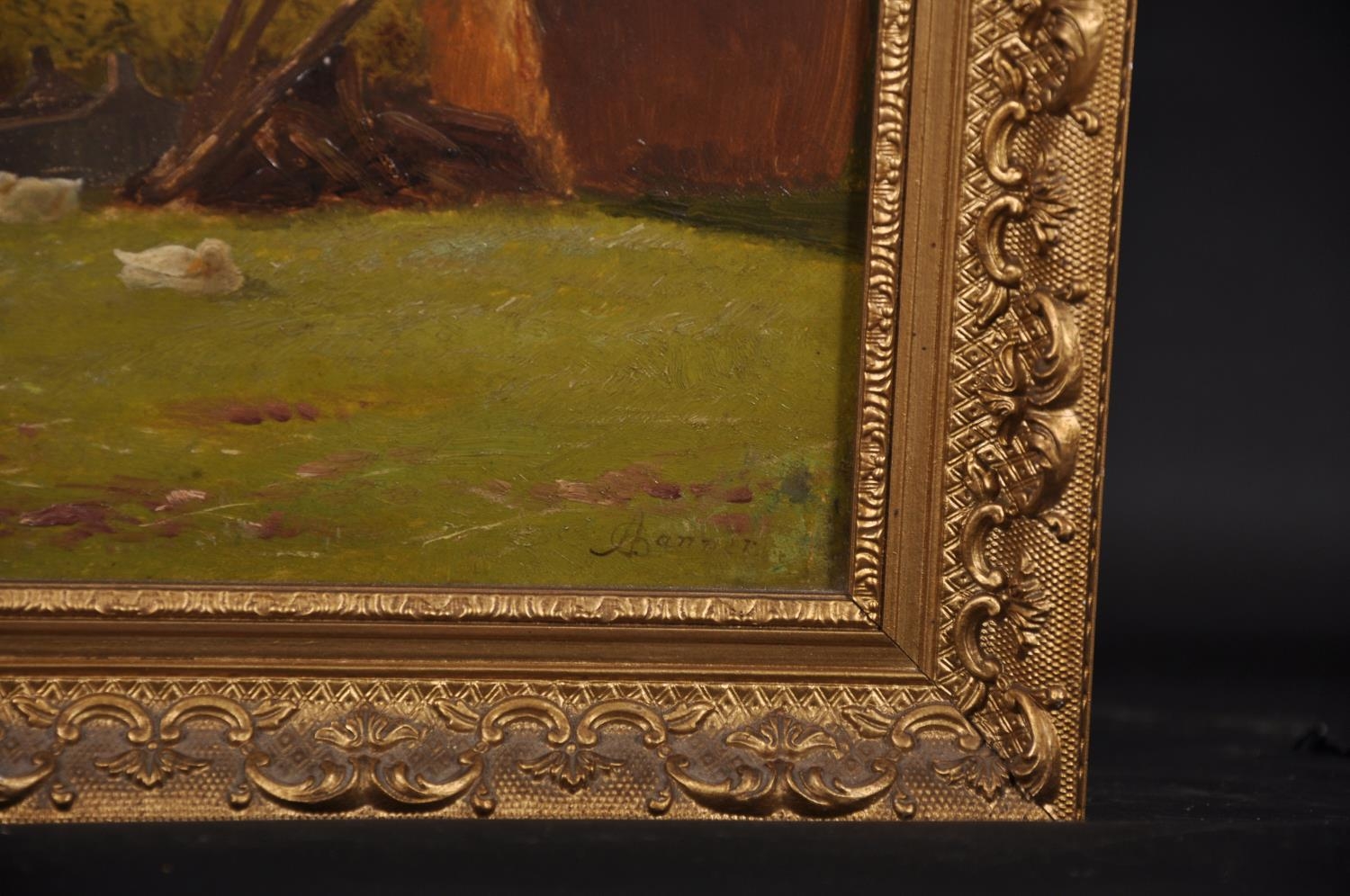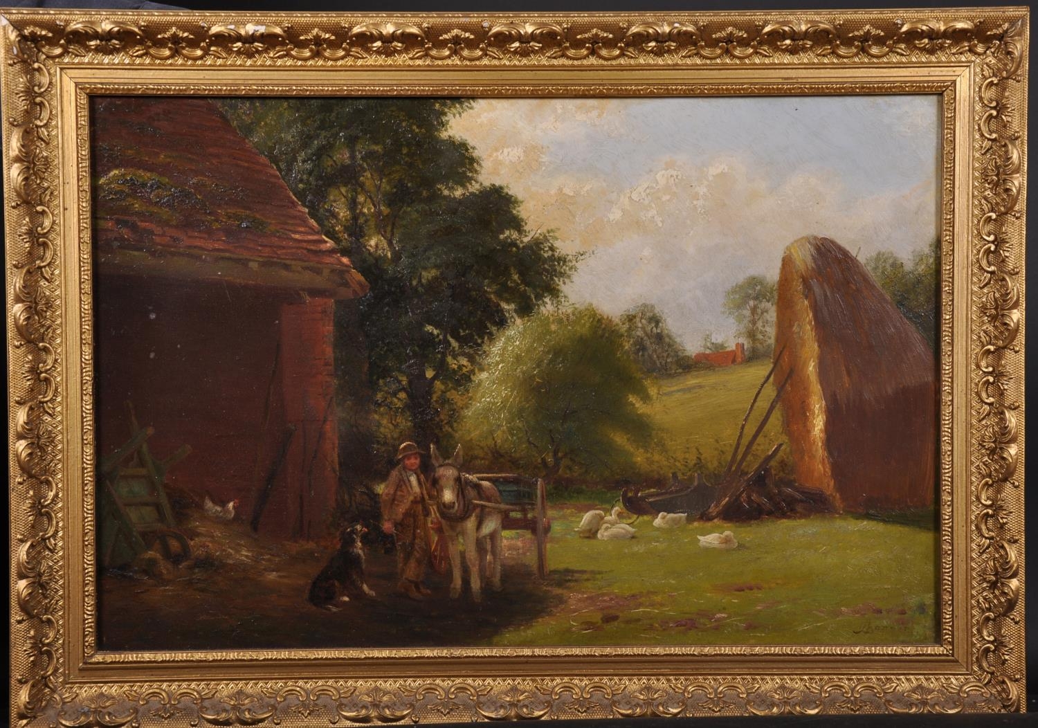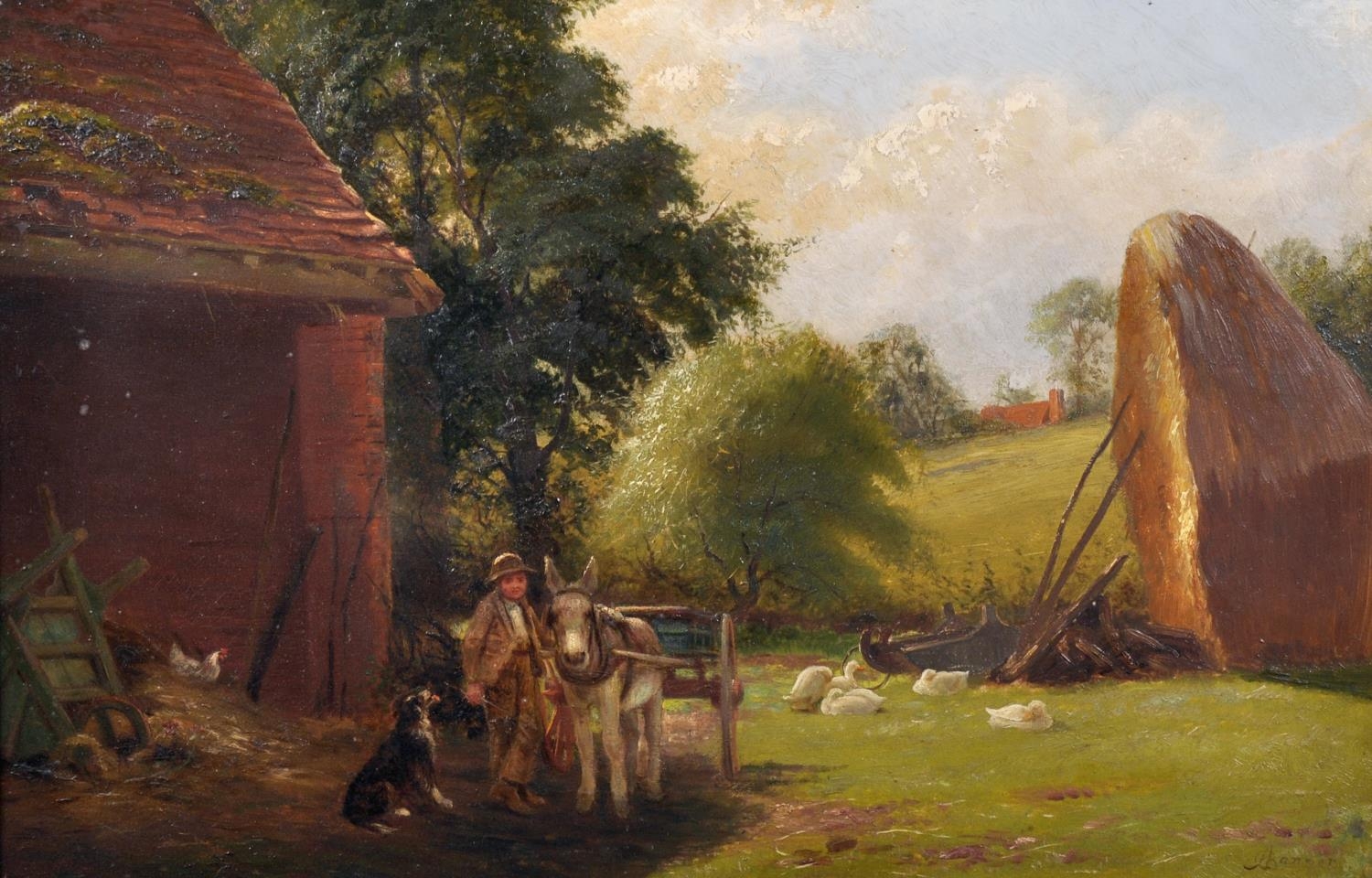 Alfred Banner (act.c.1880-c.1915) British. “Rowington, Nr Warwick”, with a Boy and Donkey and Cart, Oil on Canvas, Signed, and Signed and Inscribed on the reverse, 14” x 21” (35.5 x 53.3cm)