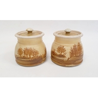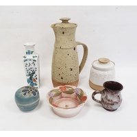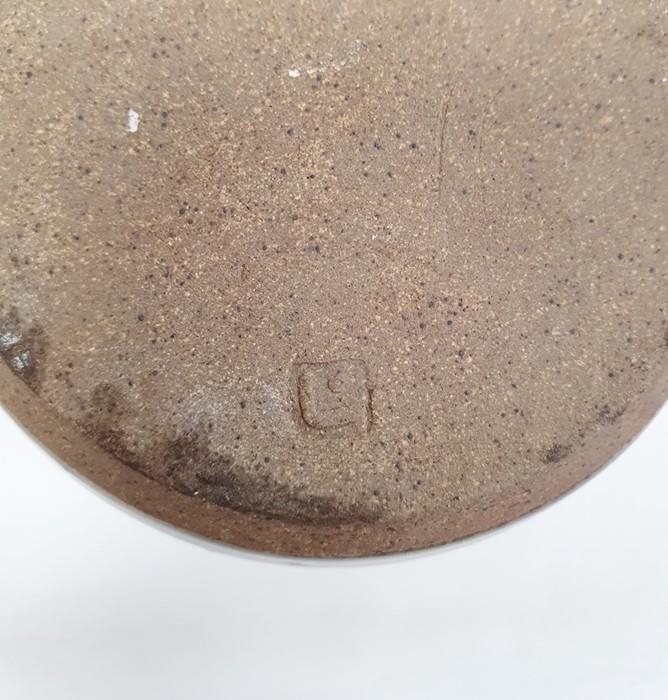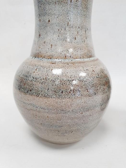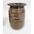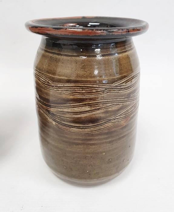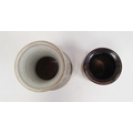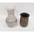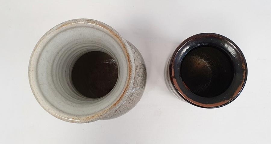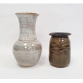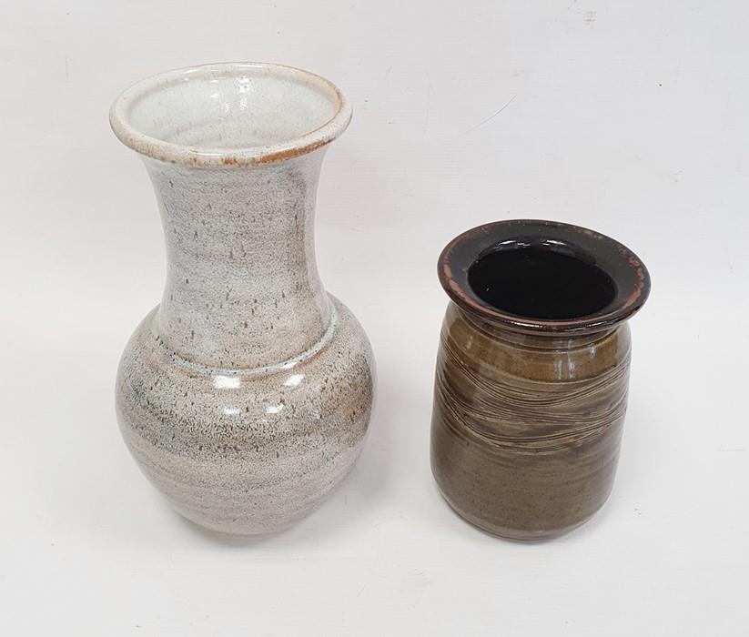 Studio pottery baluster shaped vase with impress potter's mark to base (24cm) together with a studio pottery vase with green glaze and incised decoration, impressed potter's mark to base (15cm)