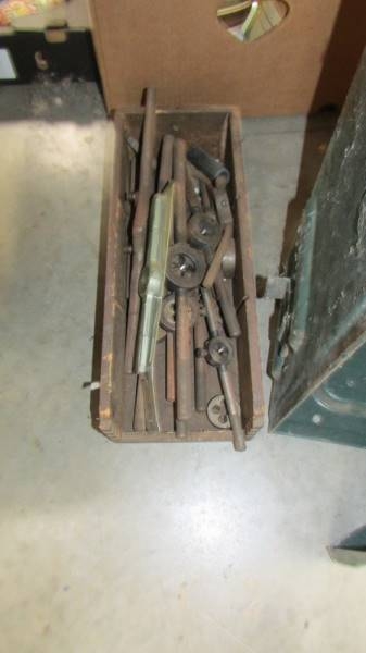 A metal tool box and a box of dies etc., (Collect only)