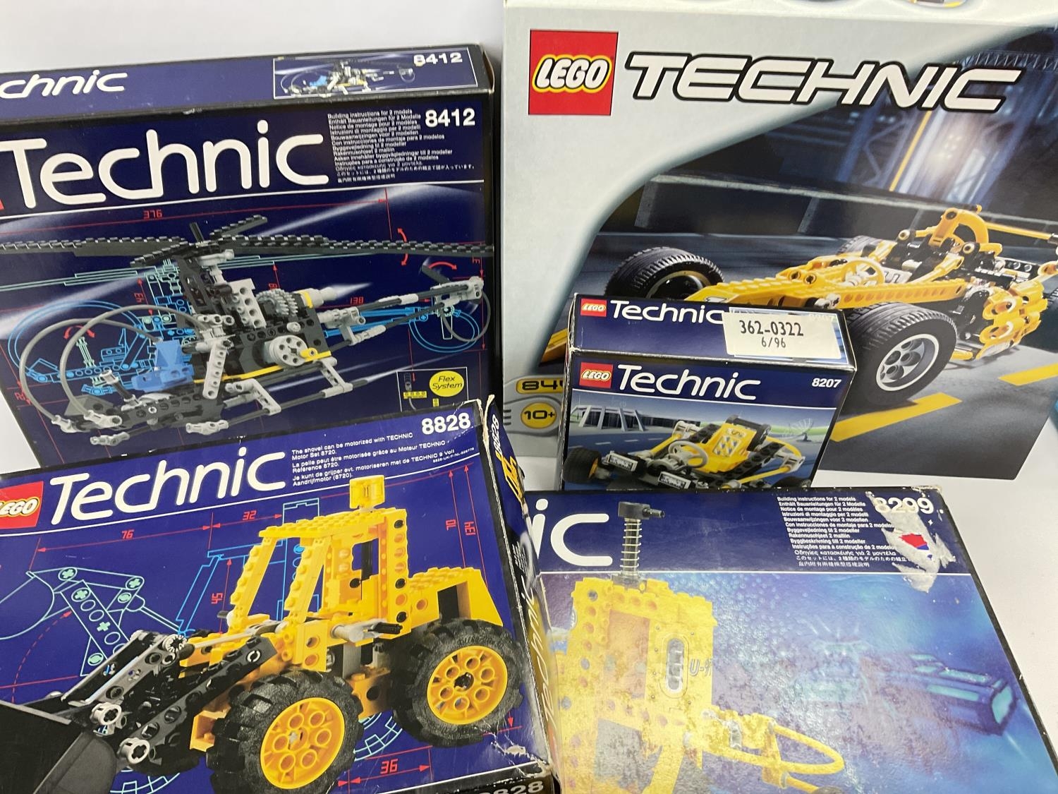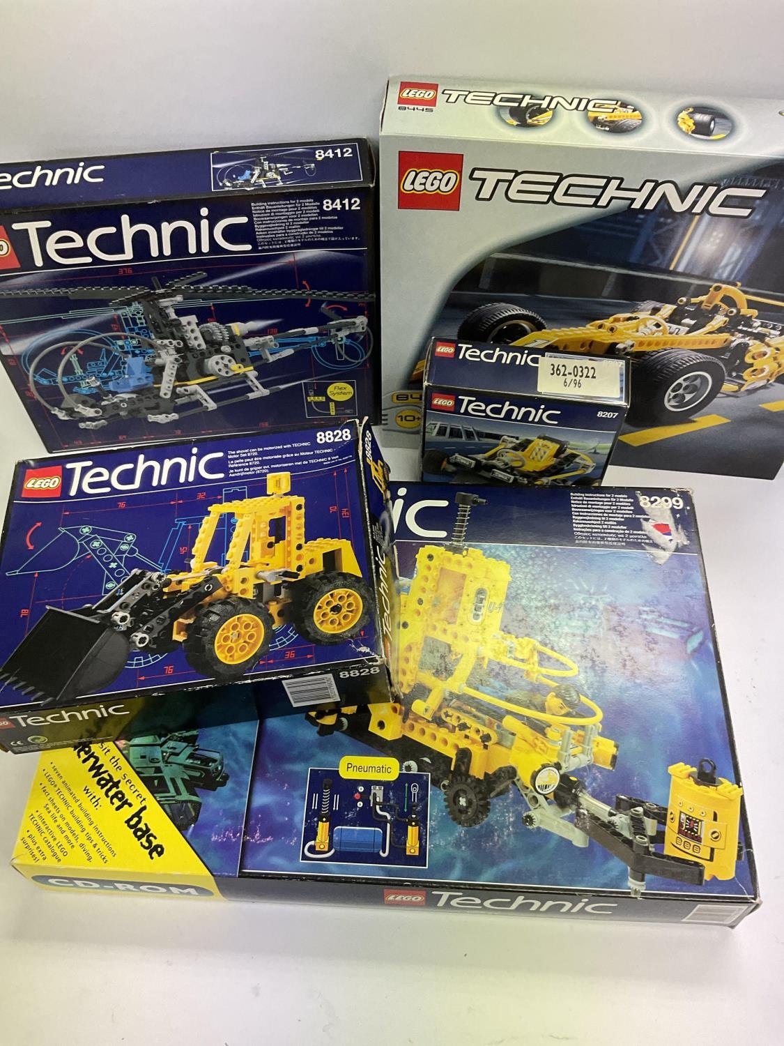 A Collection of 5 Lego Technics Sets including #s8412.8828.8207.8299 and 8445. All have been opened but appear complete apart from 8828.(5)