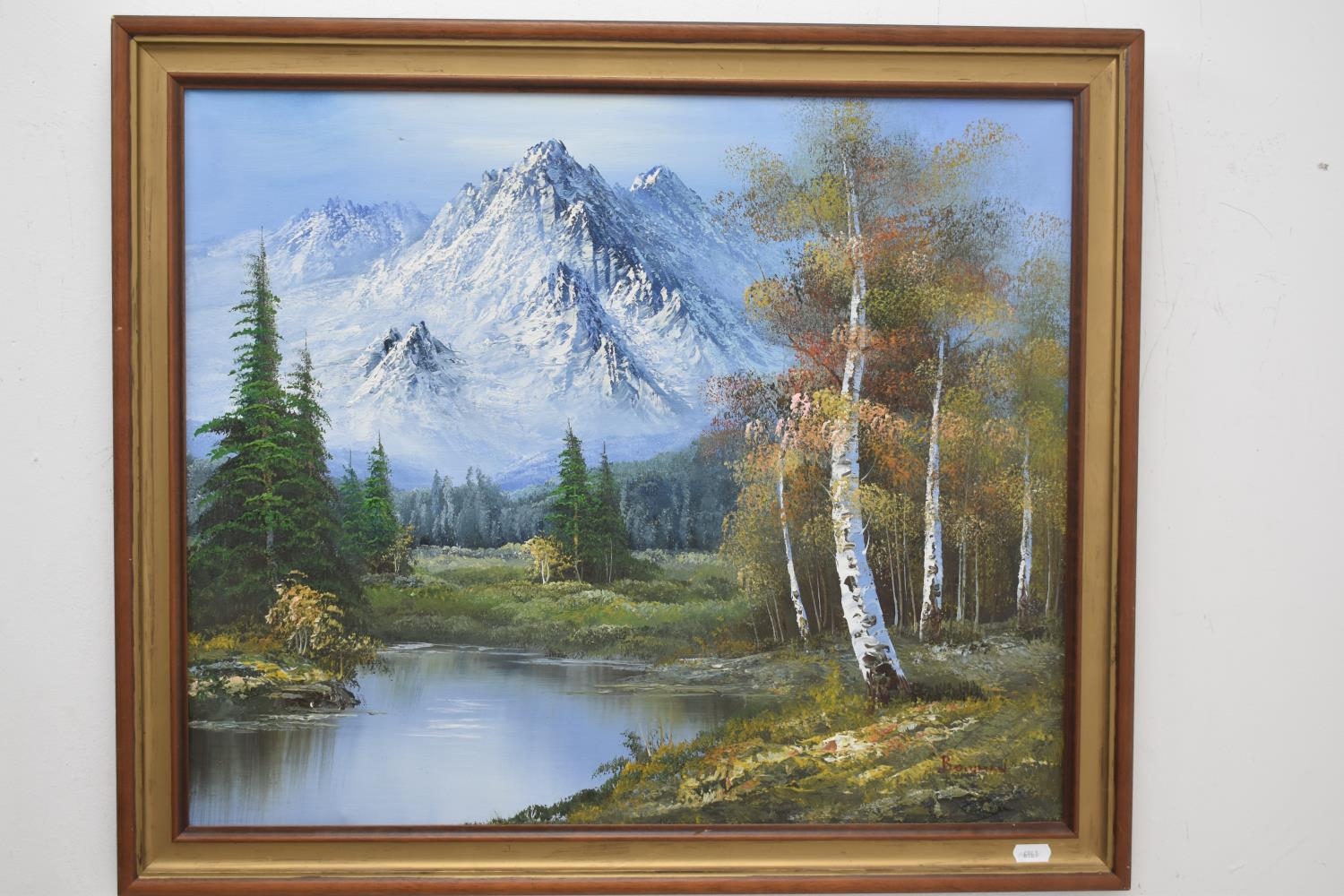 Framed K. Bowman Mountain Landscape Oil on Canvas Painting (27" x 23")