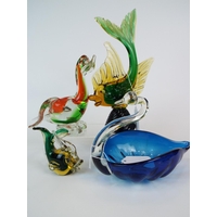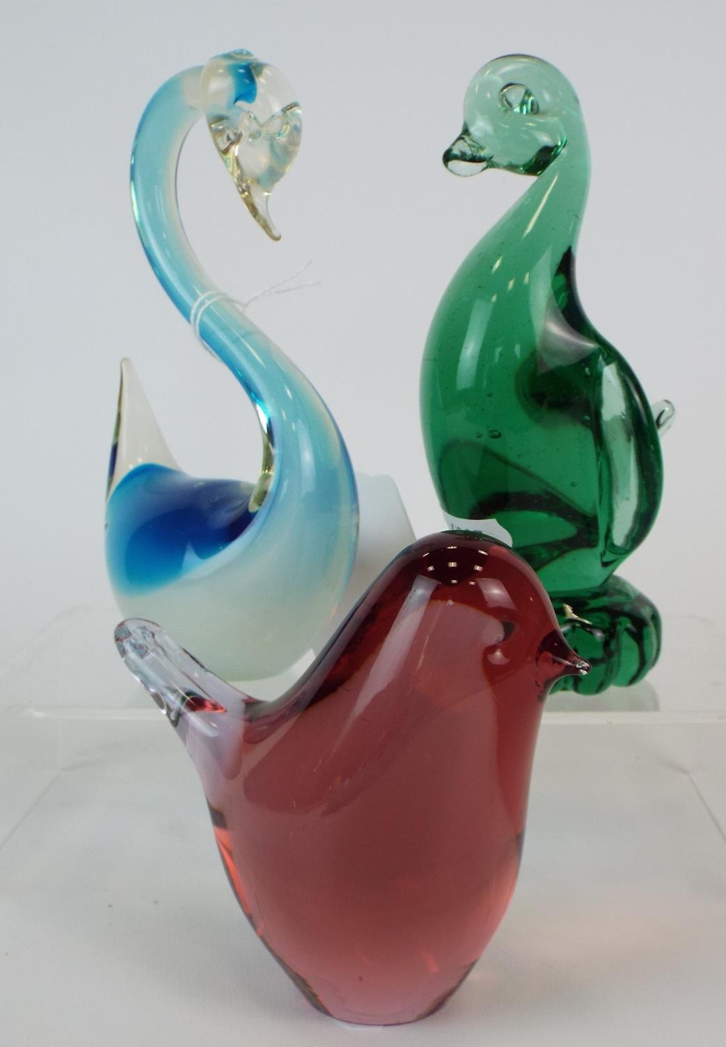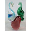 Three art glass bird paperweights, tallest 6 inches tall.