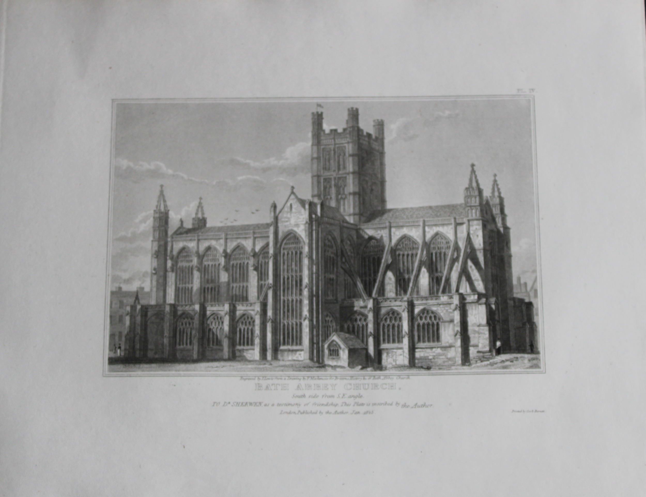 F Mackenzie - The Abbey Church, Bath engraved by J Lewis 1825. Original engraving of the South Side of Bath Abbey Church by J Lewis after F Mackenzie. Published by John Britton, London 1825.
