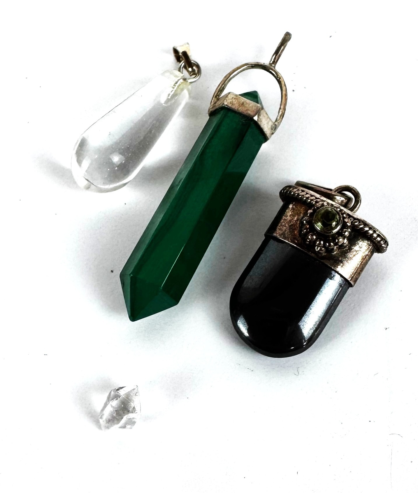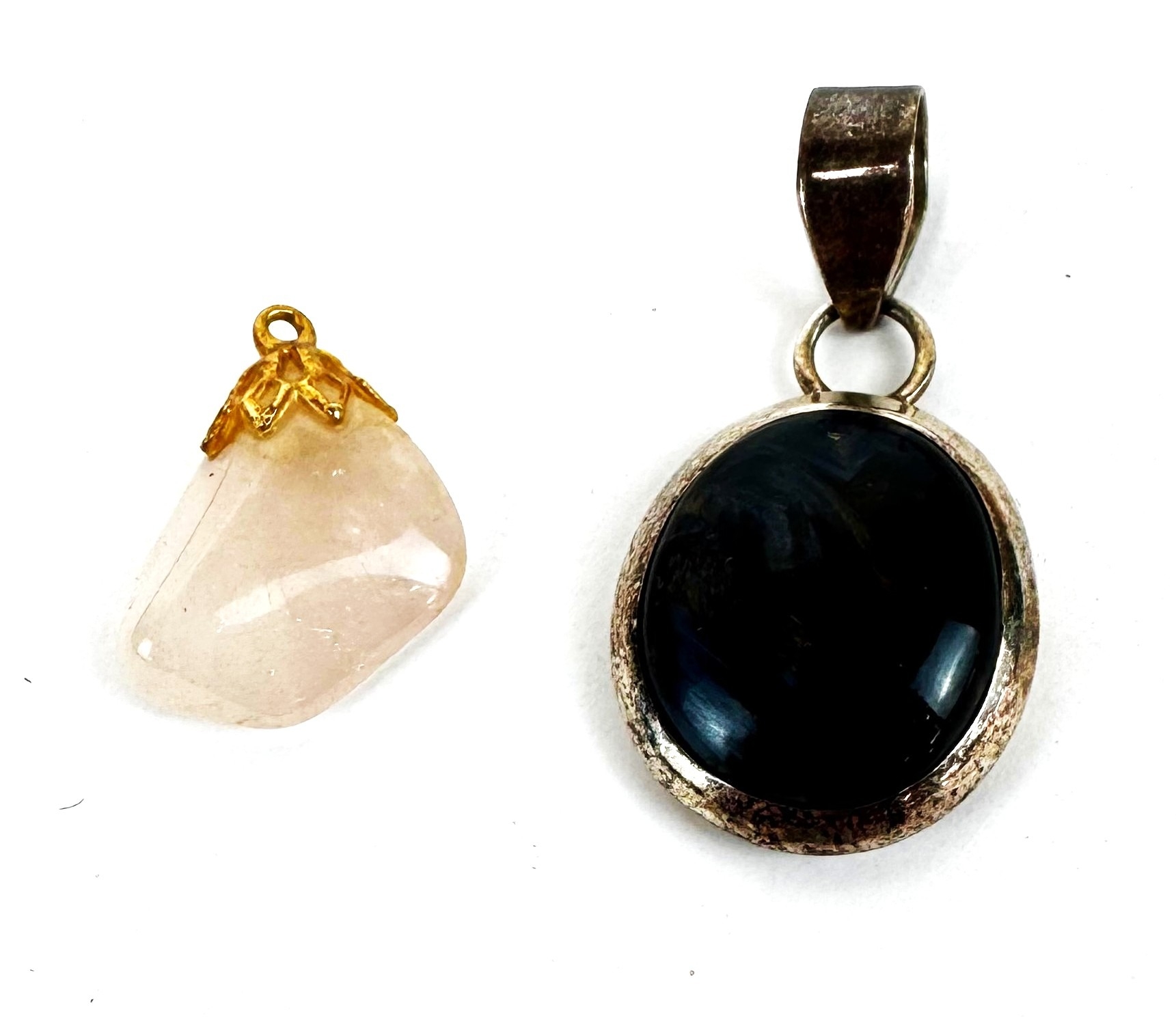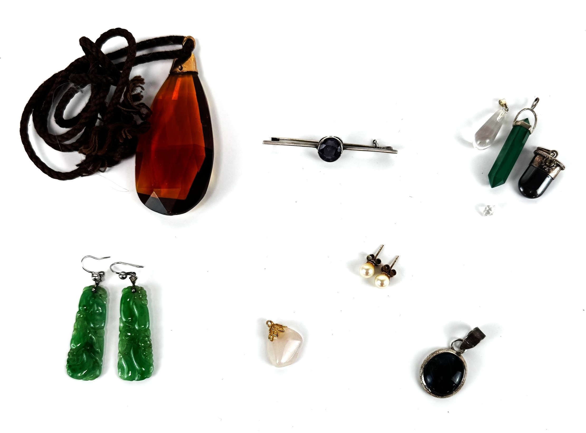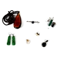 A selection of assorted decorative jewellery, including a pair of Chinese carved 'jade' earrings; also various polished stone pendants, some with yellow metal mountings, etc. (a lot).
