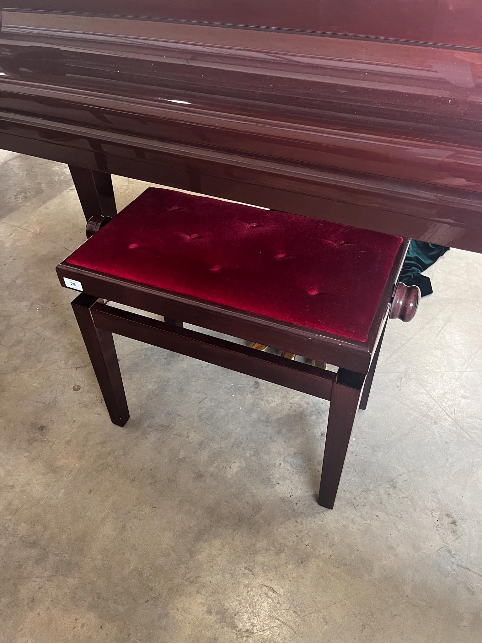 A 4ft 7in grand piano in a bright mahogany case; together with a matching stool and green velvet cover.