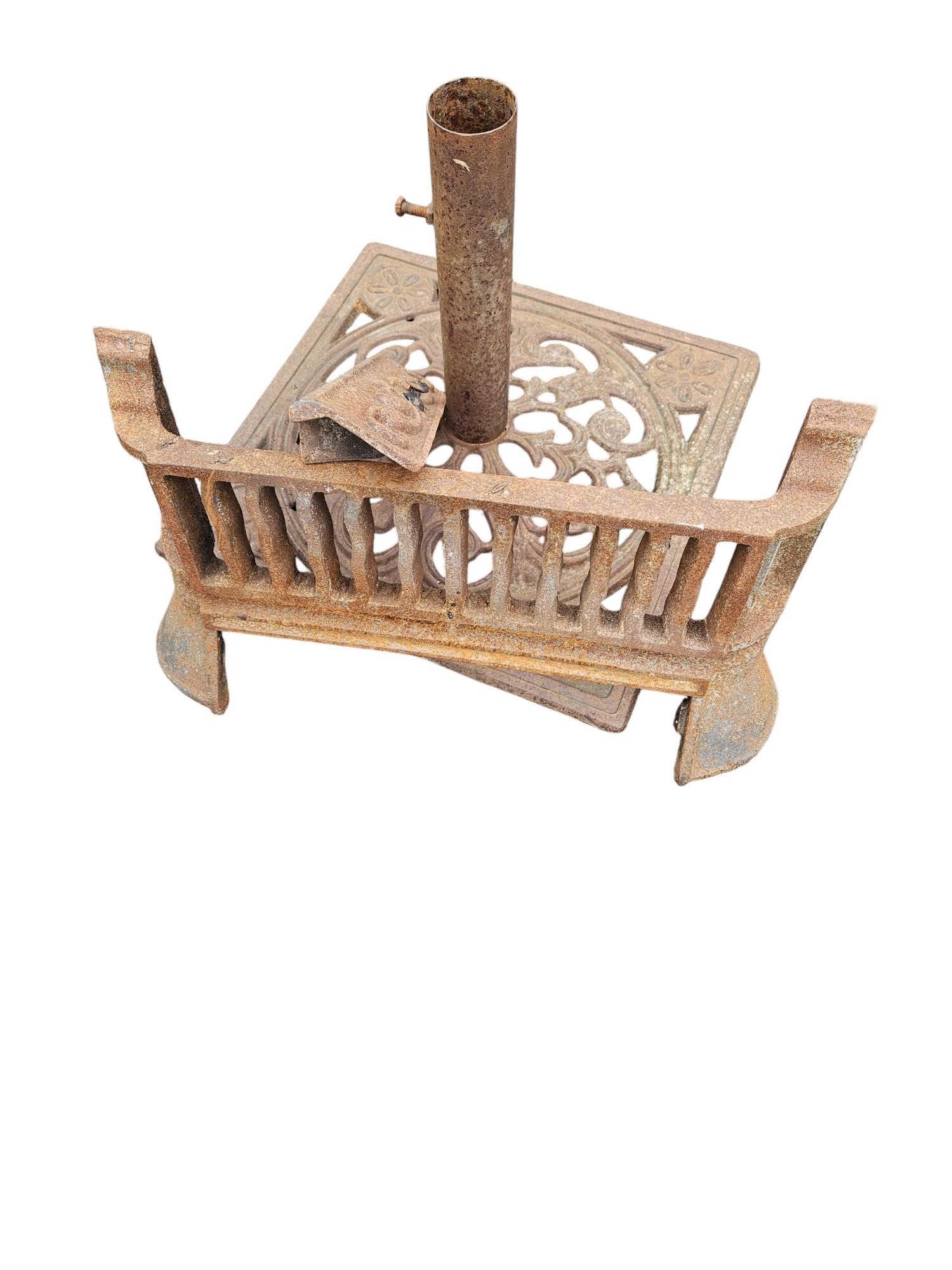 A heavy Cast Iron Stand along with a Fire Front. 38 x 47 cm approx.