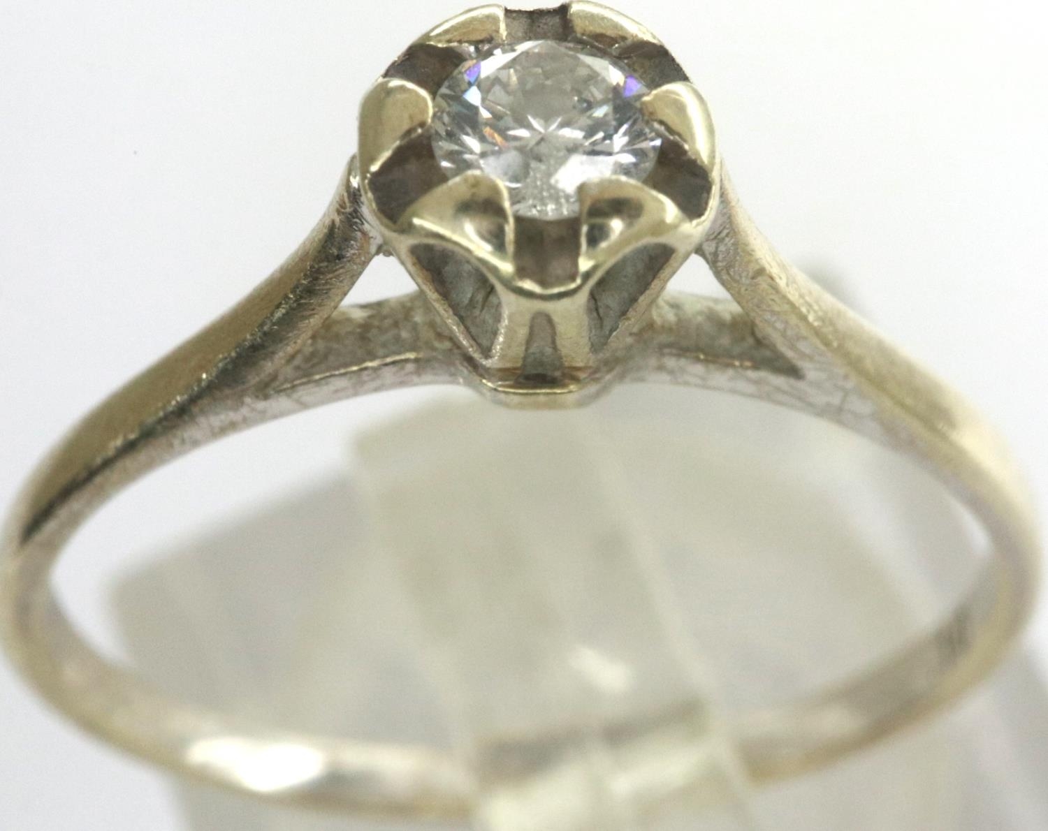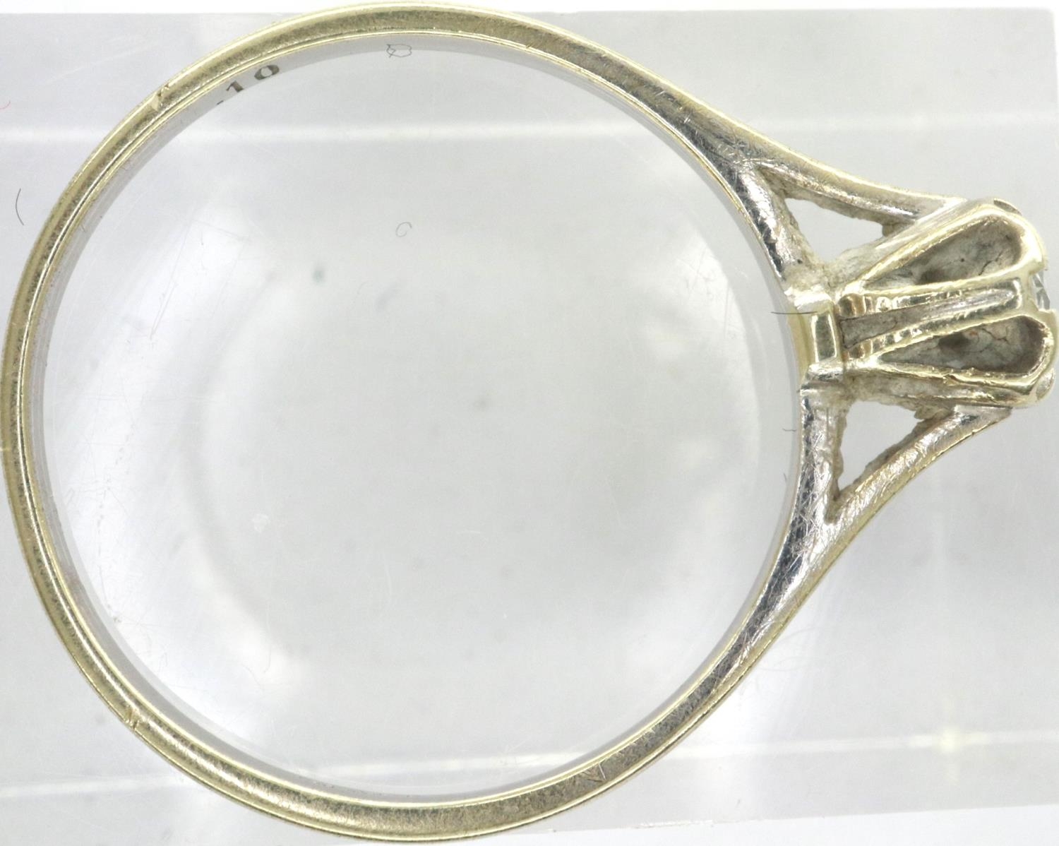 9ct white gold (unmarked) diamond set solitaire ring, size M, 1.3g. P&P Group 1 (£14+VAT for the first lot and £1+VAT for subsequent lots)