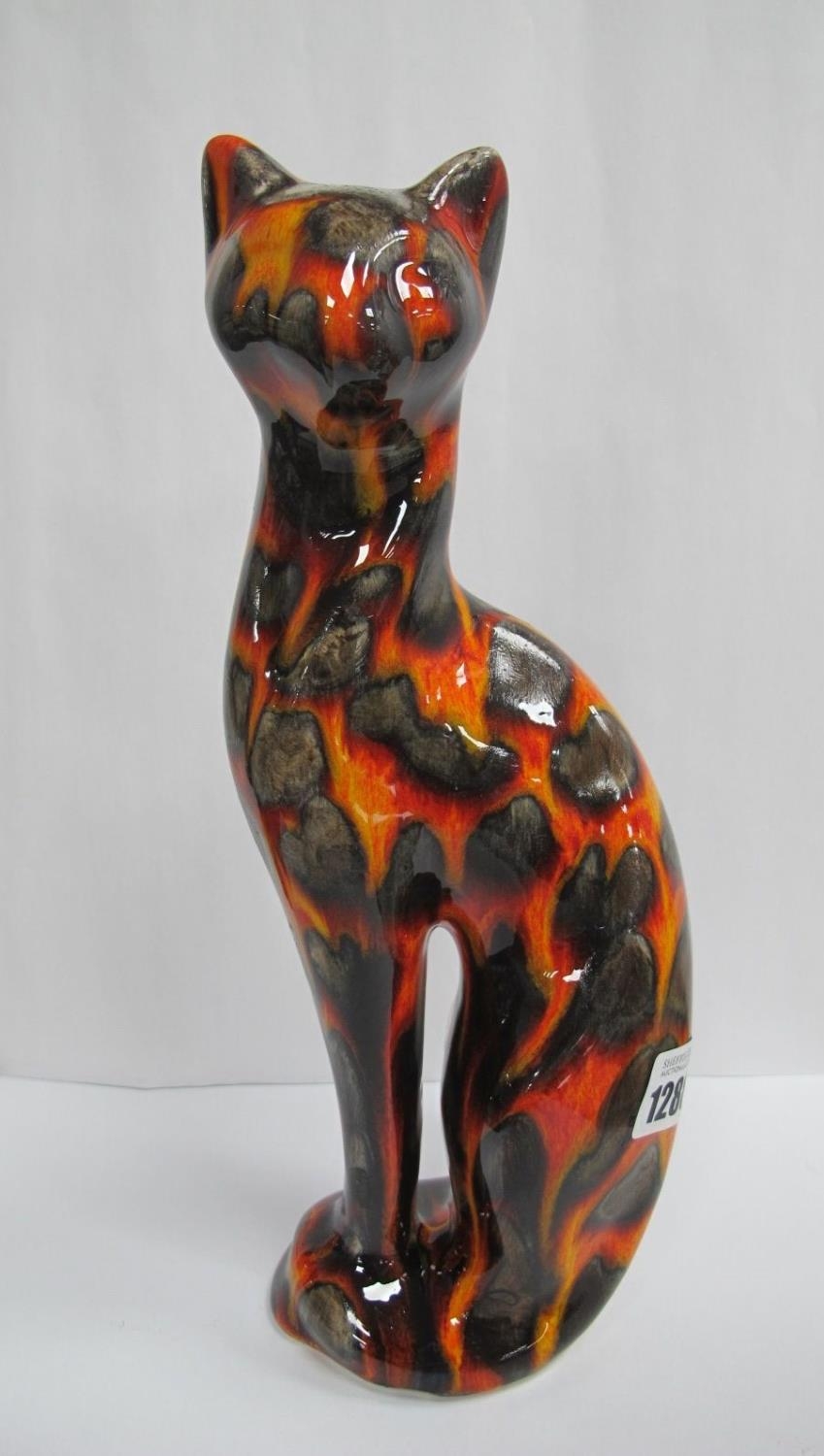 An Anita Harris Hot Coals Sitting Cat Figure, gold signed, 29cm high.
