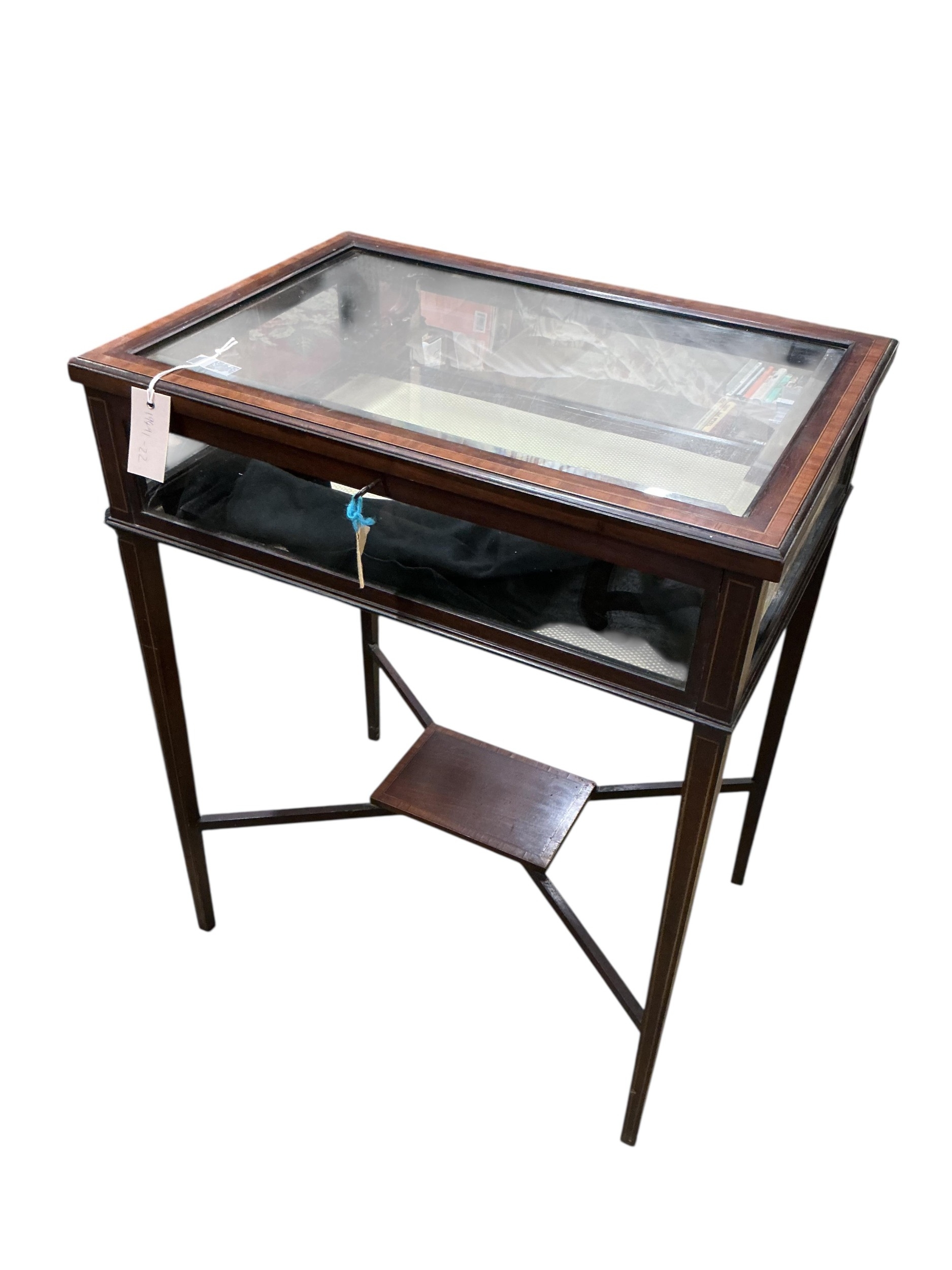 An Edwardian satinwood banded mahogany bijouterie table, width 60cm, depth 42cm, height 74cm