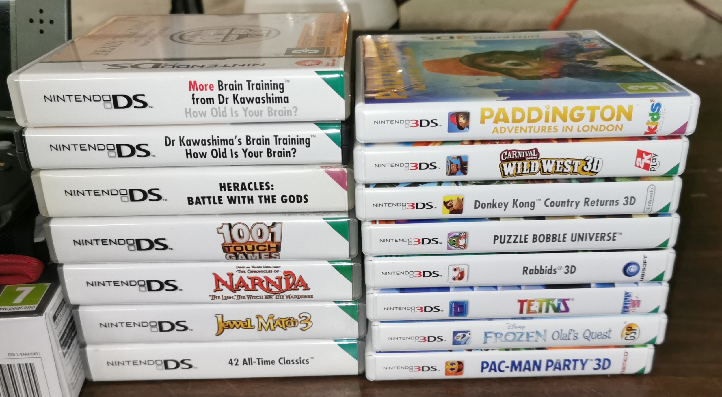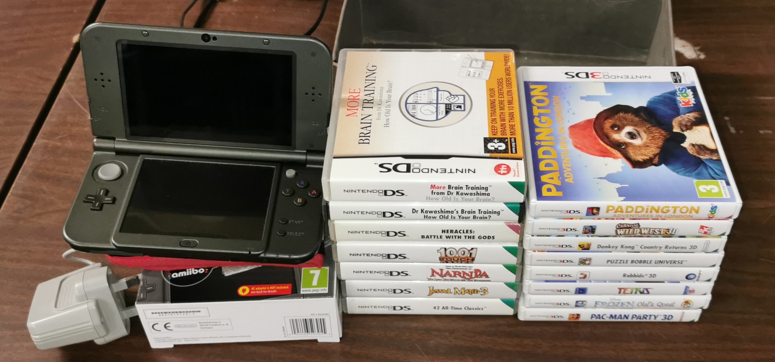 Boxed Nintendo 3DS XL with case, charger, 8 x 3DS games and 7 x DS games