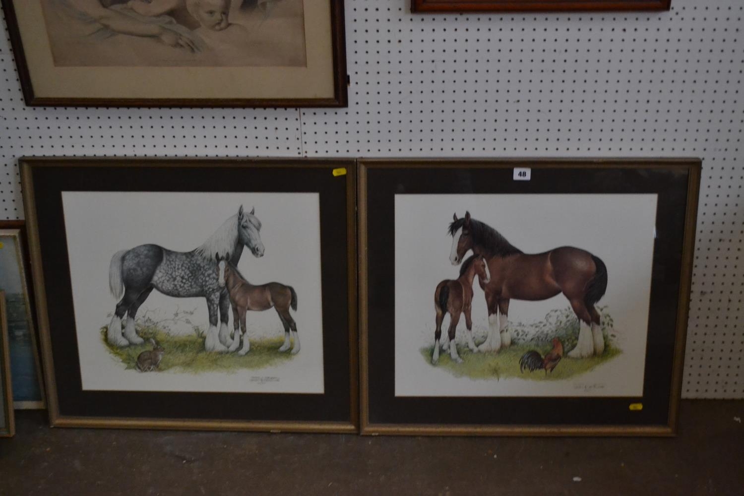 PAIR OF COLOURED HORSE AND FOAL LIMITED EDITION PRINTS AFTER PATRICK OXENHALL