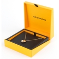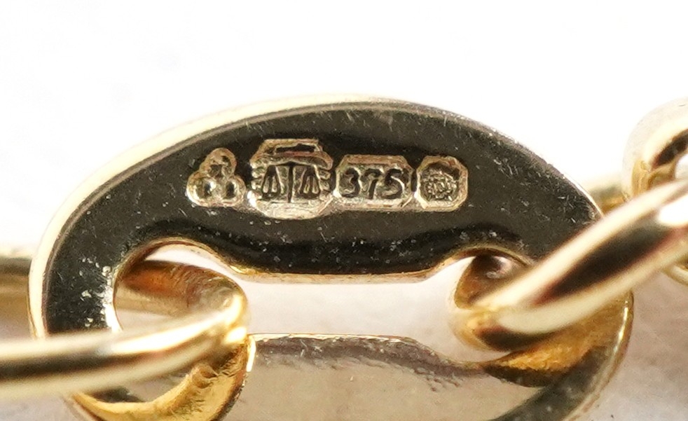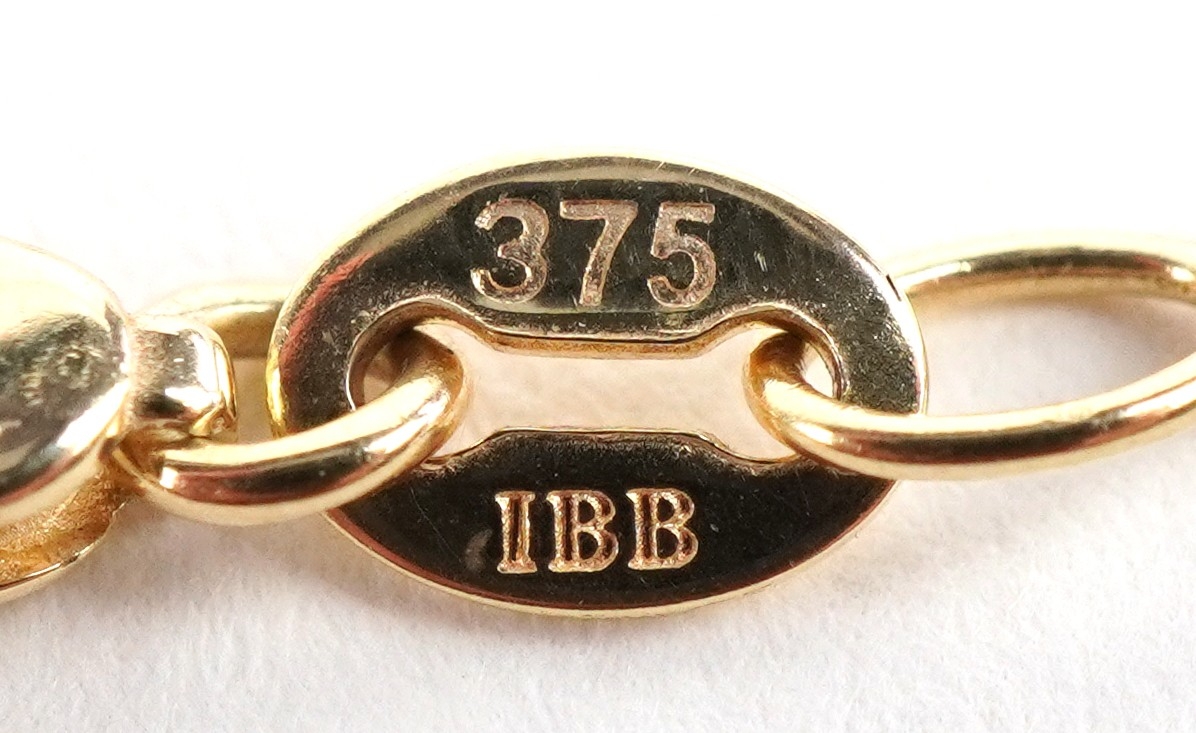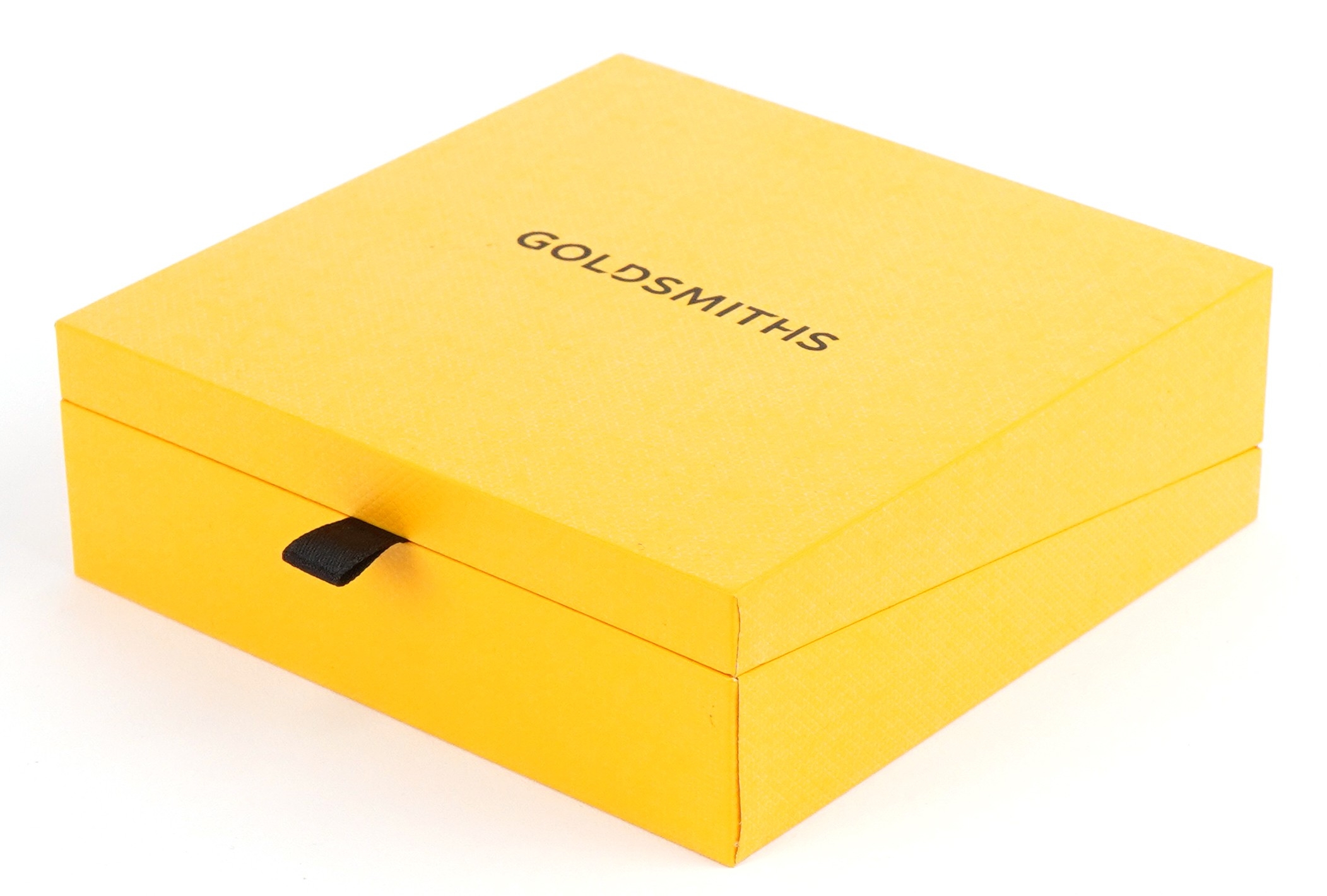An as new 9ct gold love heart pendant on a 9ct gold necklace retailed by Goldsmiths, with box, 2cm high and 46cm in length, total 3.7g.