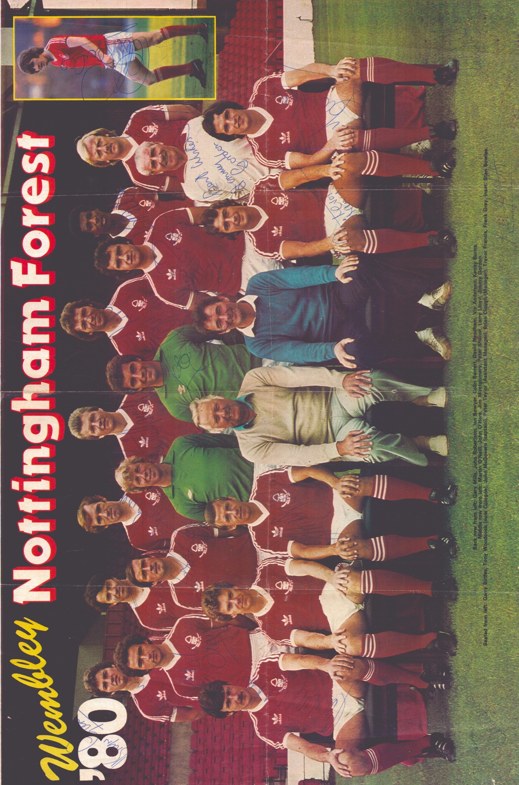 Gary Mills, John O'Hare, Trevor Francis and others signed Nottingham Forest Wembley 1980, magazine page.
