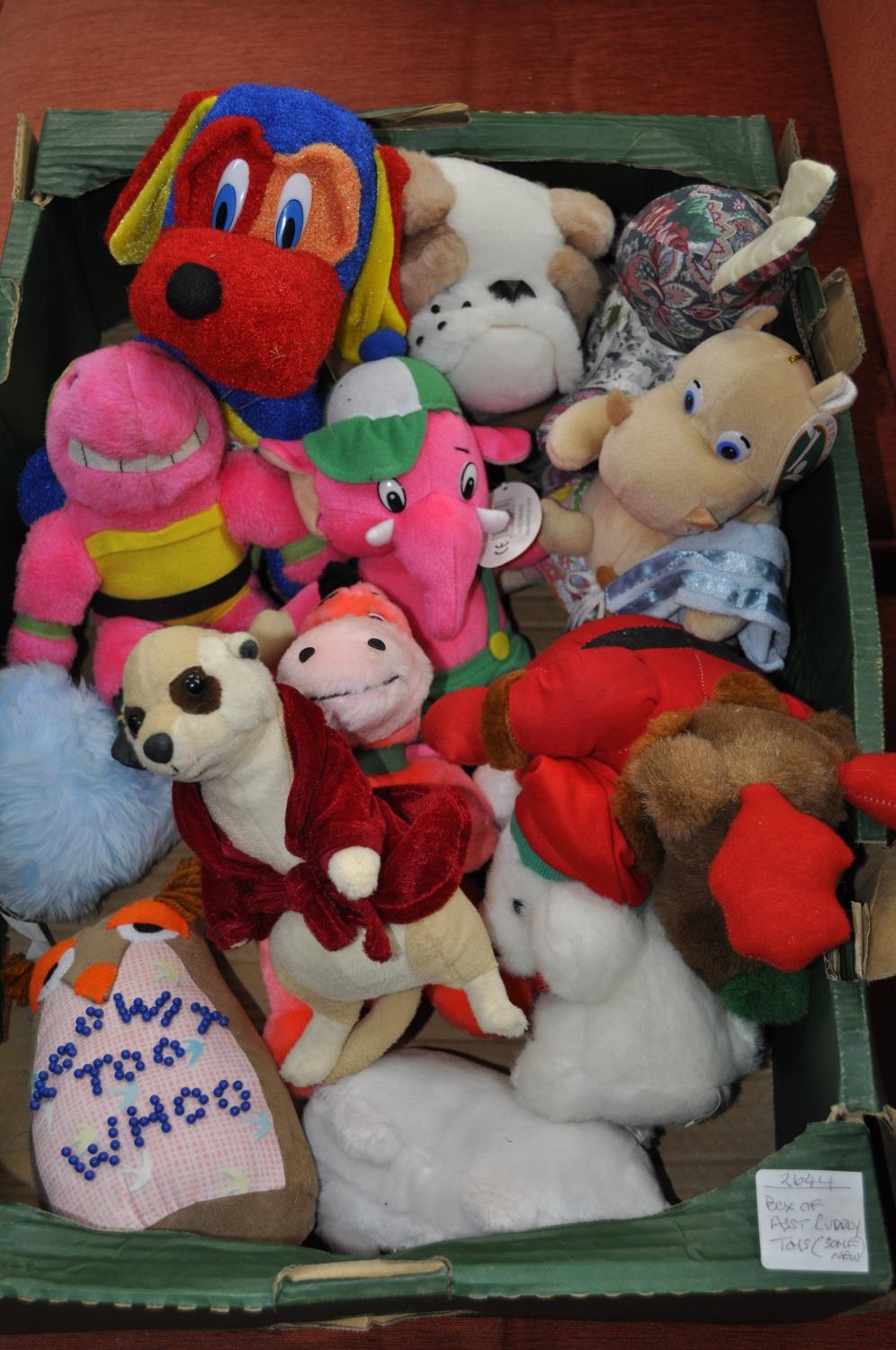 BOX OF ASSORTED CUDDLY TOYS, SOME NEW