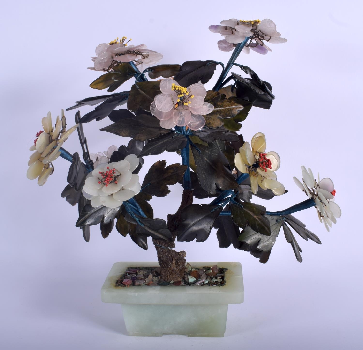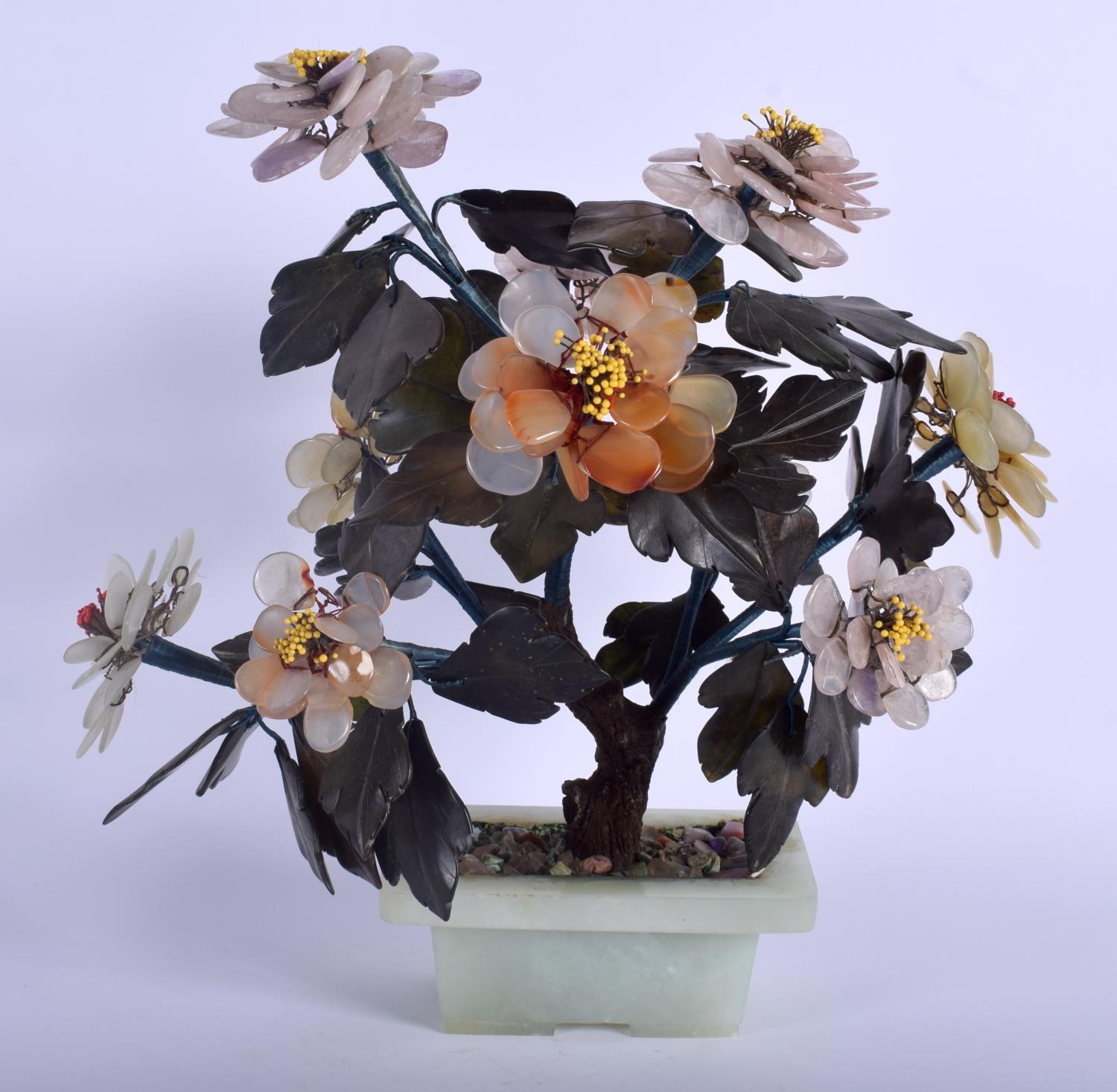 AN EARLY 20TH CENTURY CHINESE CARVED JADE AND AGATE BONZAI TREE Qing/Republic. 33 cm x 18 cm.