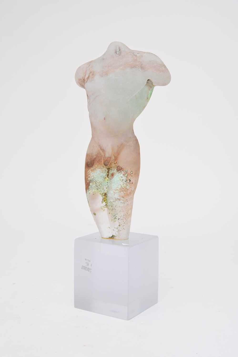 Renato Anatra (Murano), a Scavo glass model of a male nude torso, circa 1980s, on a square plinth, signed 'R. Anatra', with vetri murano paper label, overall height 39.5cm high Condition:Bust in good condition with no damages or repairs. Some slight scratches and edge wear to the plinth base, commensurate with age.