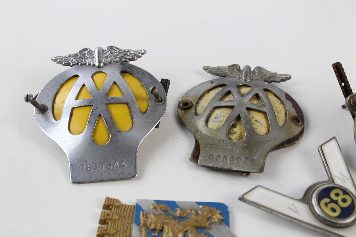 6 x Assorted Vintage AUTOMOBILIA Car Grille Badges Inc AA, RAC, Motorcycle Etc