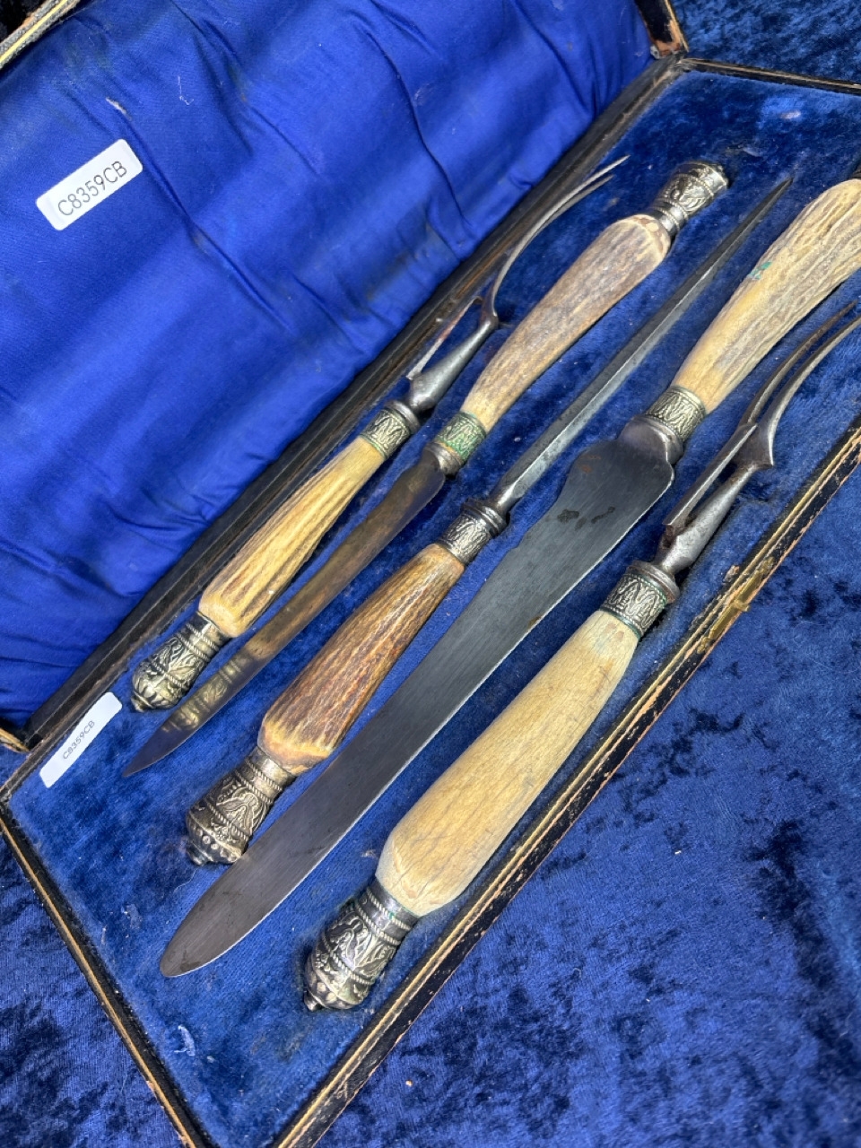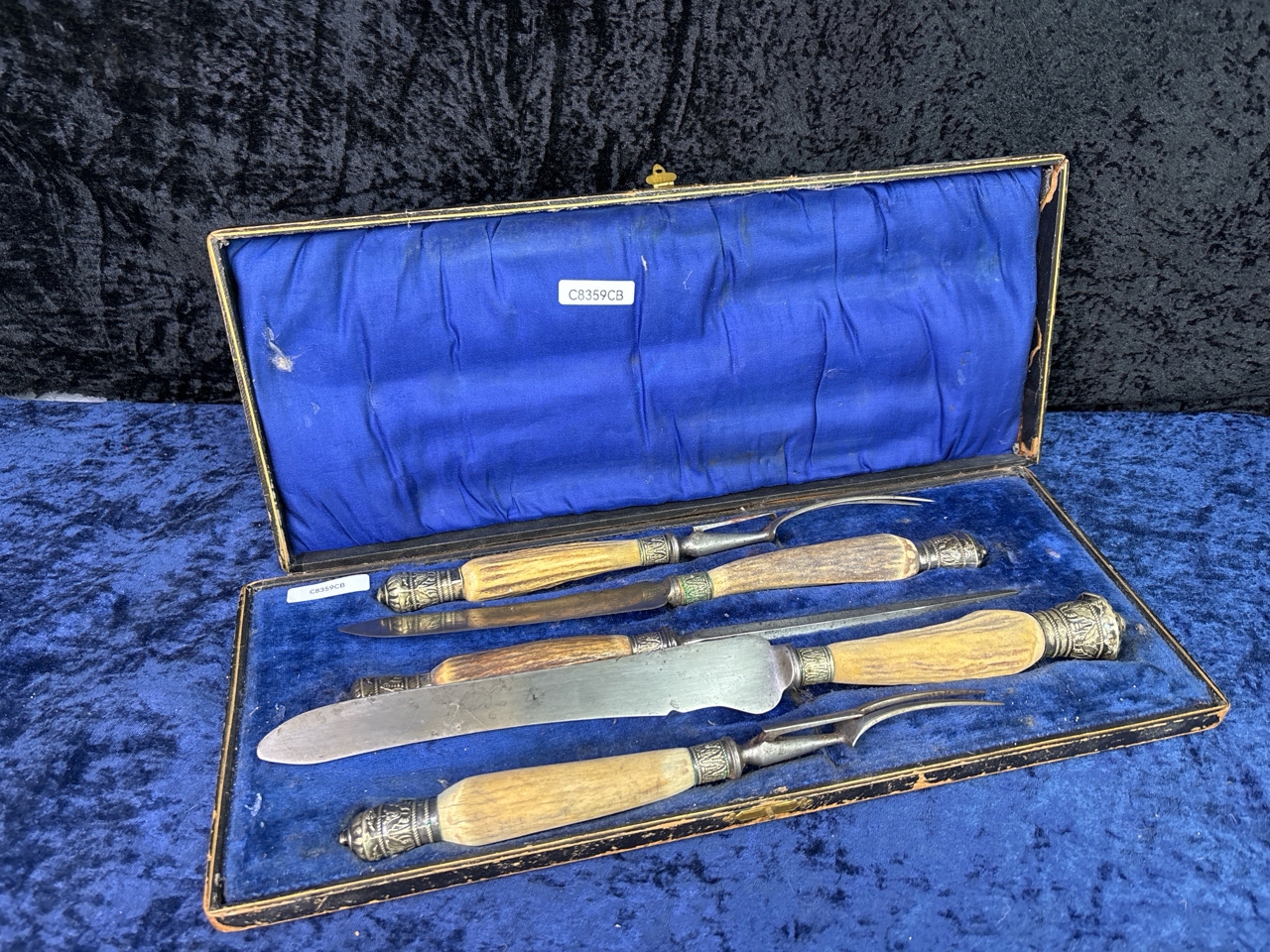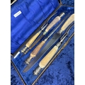 Fabulous antique 'Battle Axe' Sheer Steel carving knife and set in original velvet lined presentation box