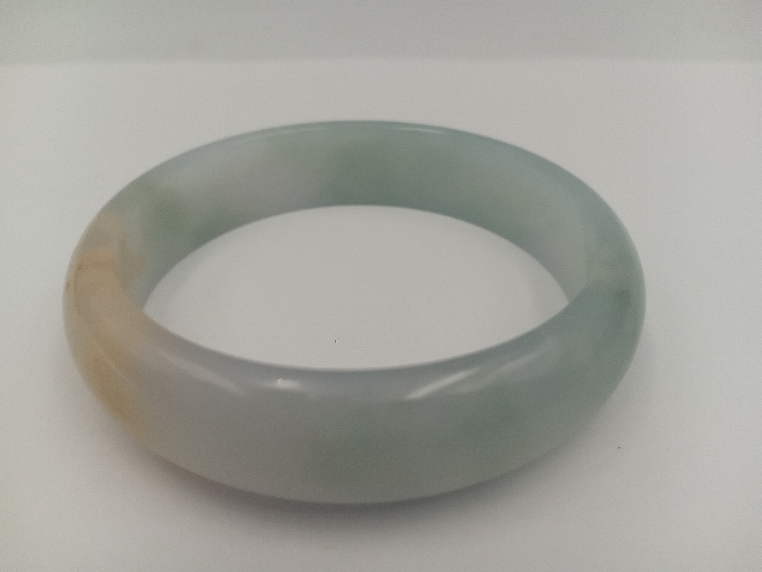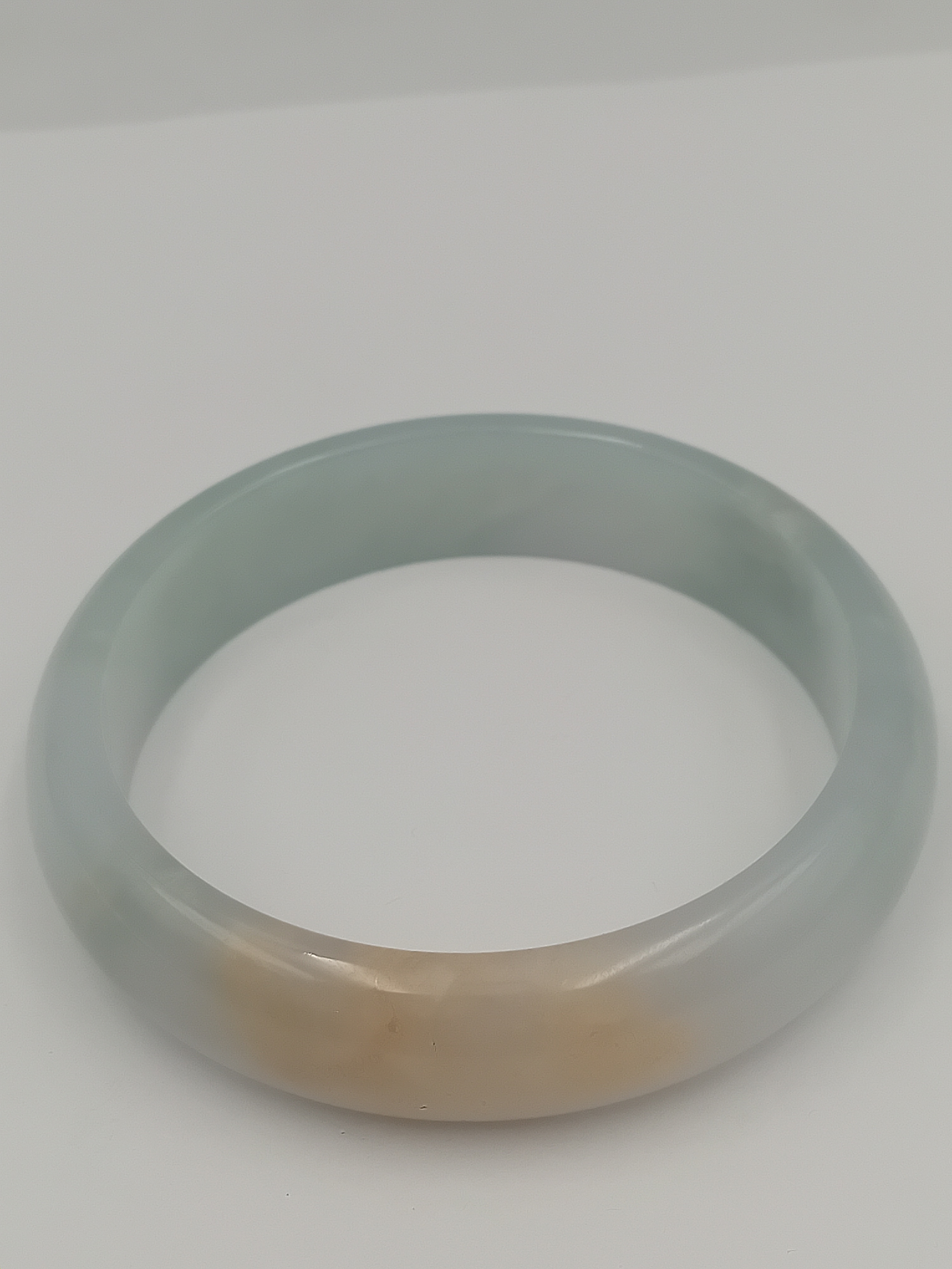 An icy white with green jade bangle.