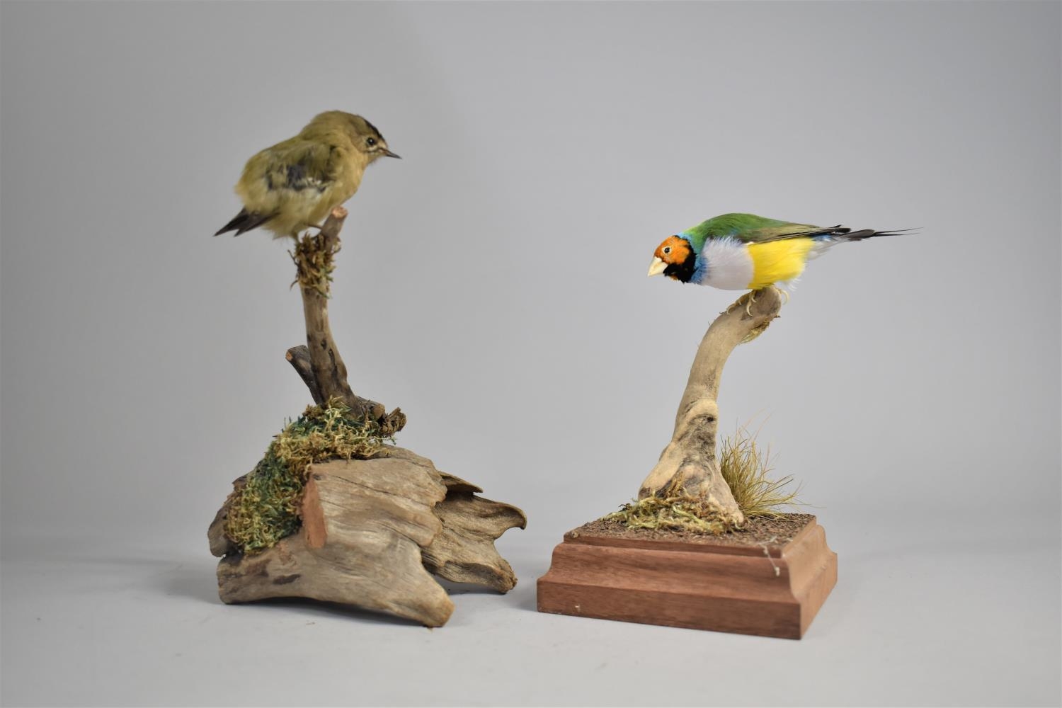 Two Taxidermy Studies of Birds on Branches