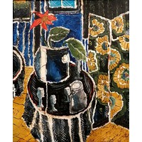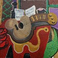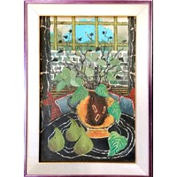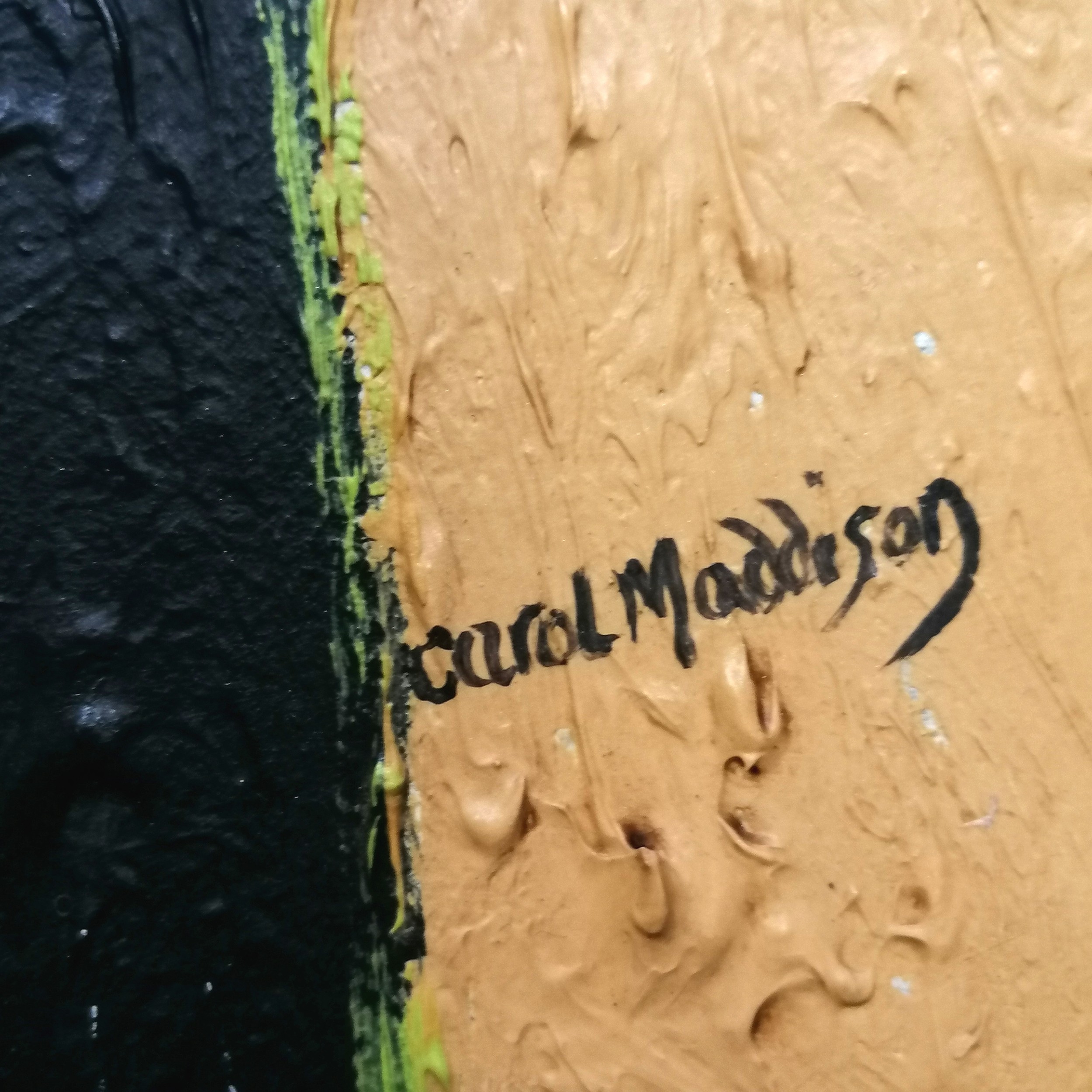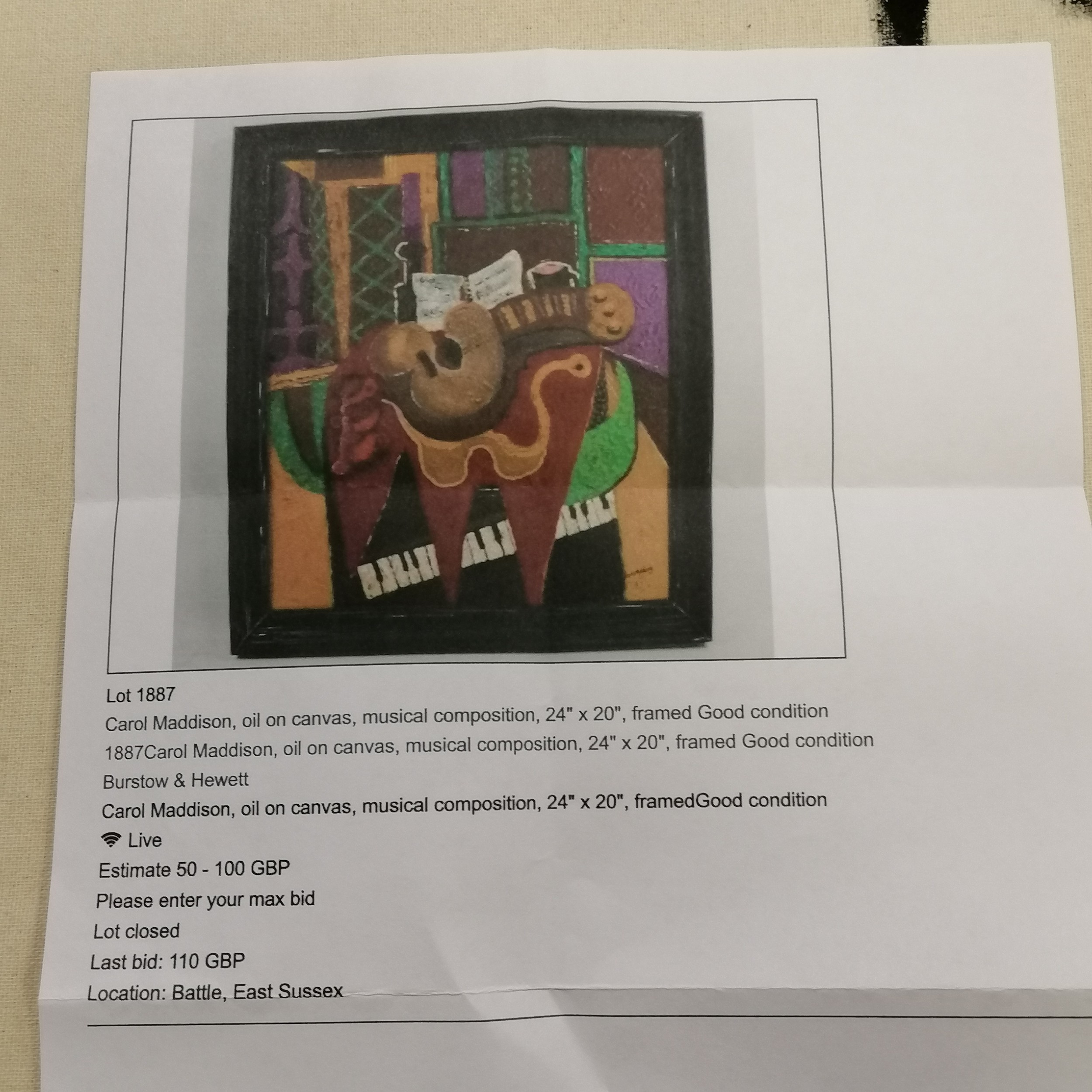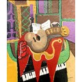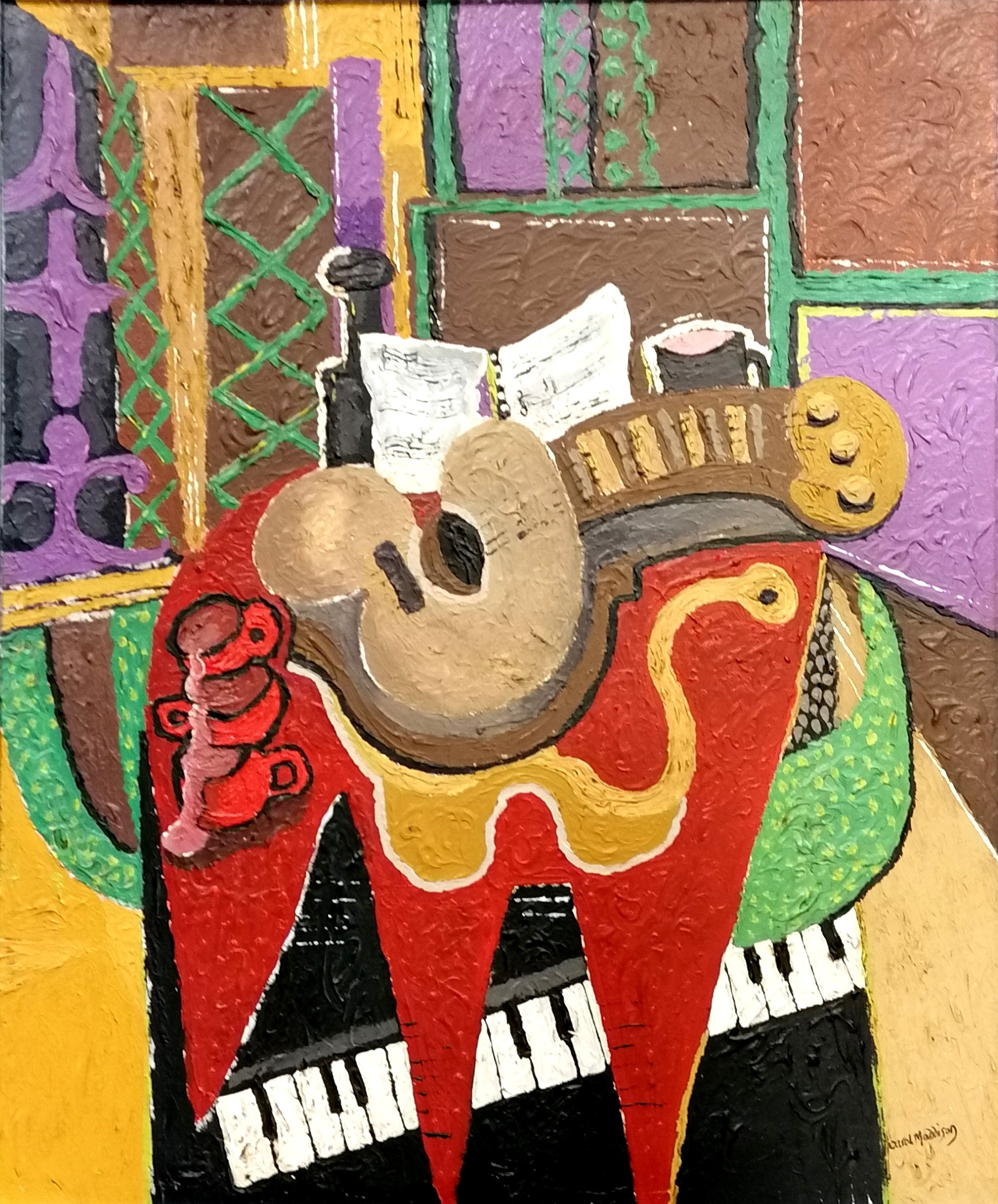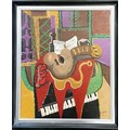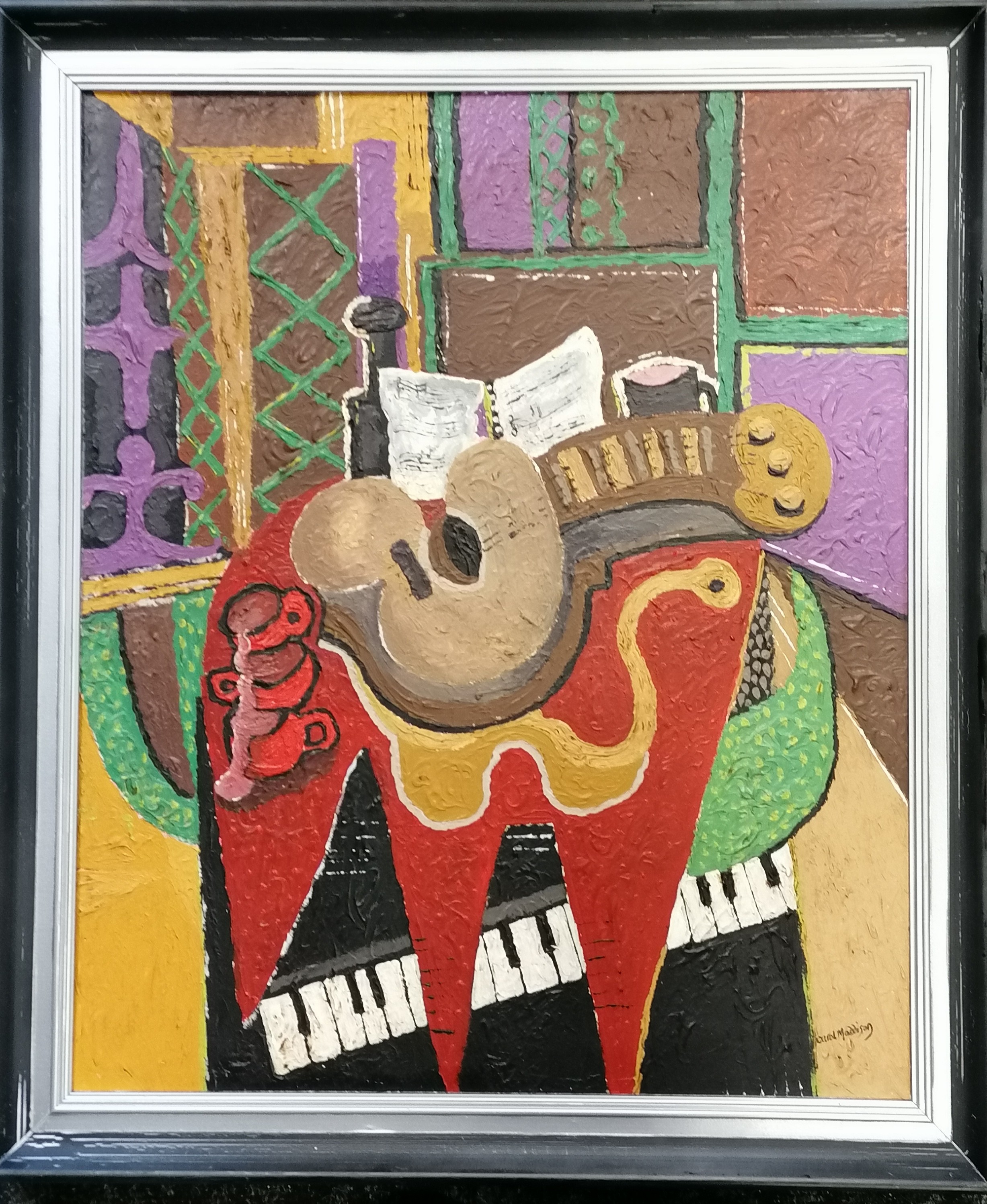 Carol Maddison contemporary oil on canvas musical composition - black / silver frame 69cm x 59cm