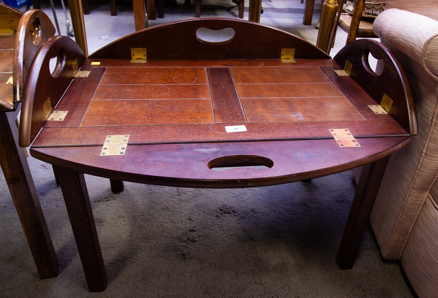 2 TRAY TOP COFFEE TABLES 71 X 45 X 52 CM AND 46 X 46 X 56 CM HIGH