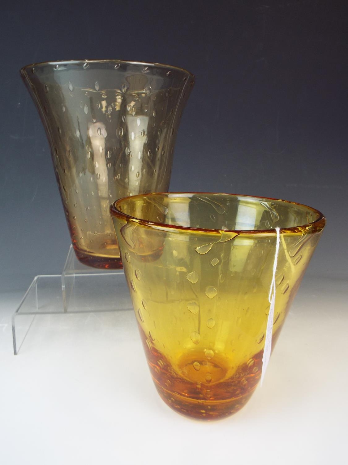 Pair of Whitfriars bubble vases. Largest being 8 inches tall.