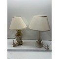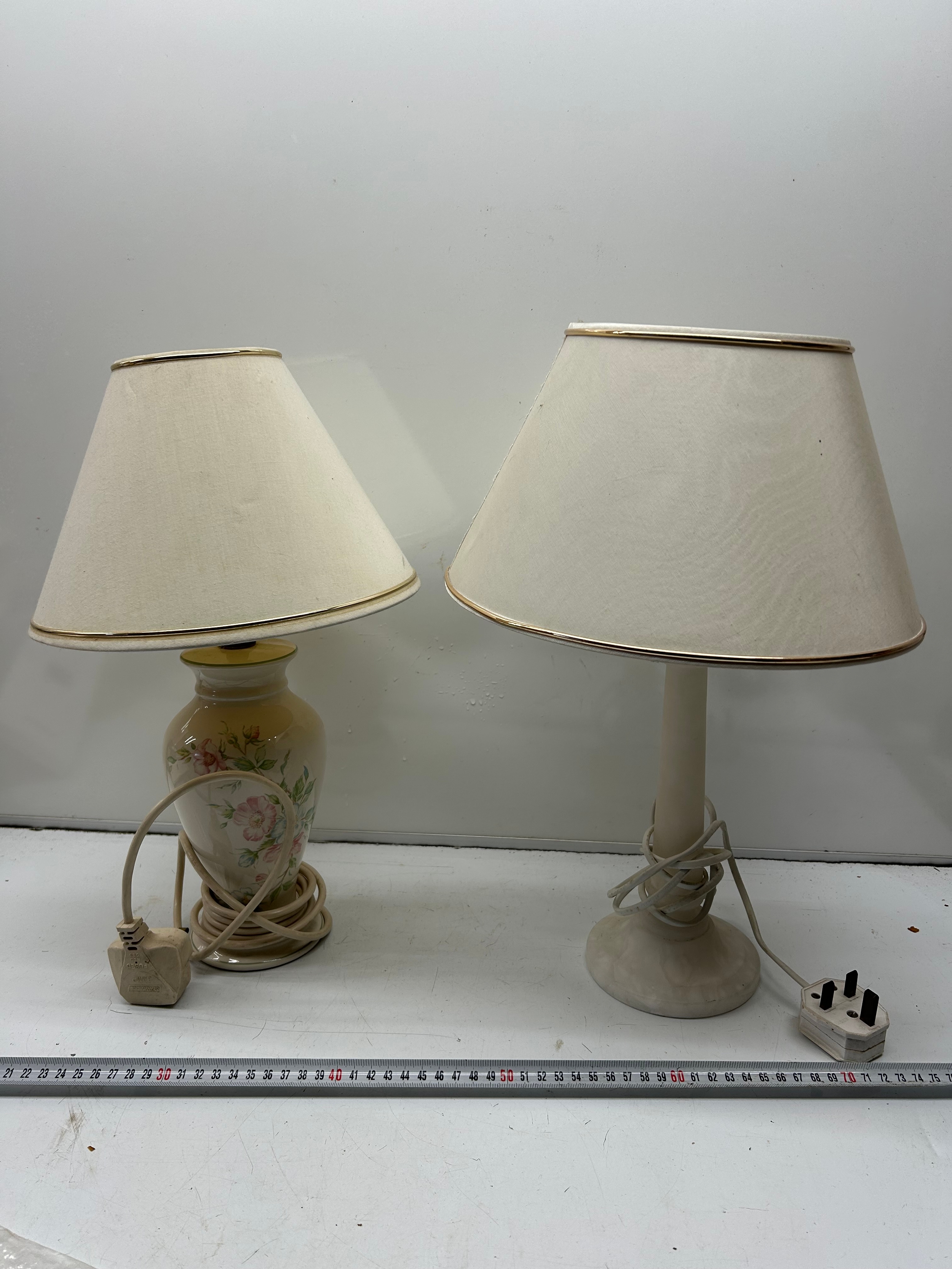 Two Table Lamps – One Floral Ceramic & One Plain Column – With Shades – Untested