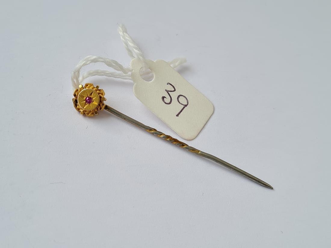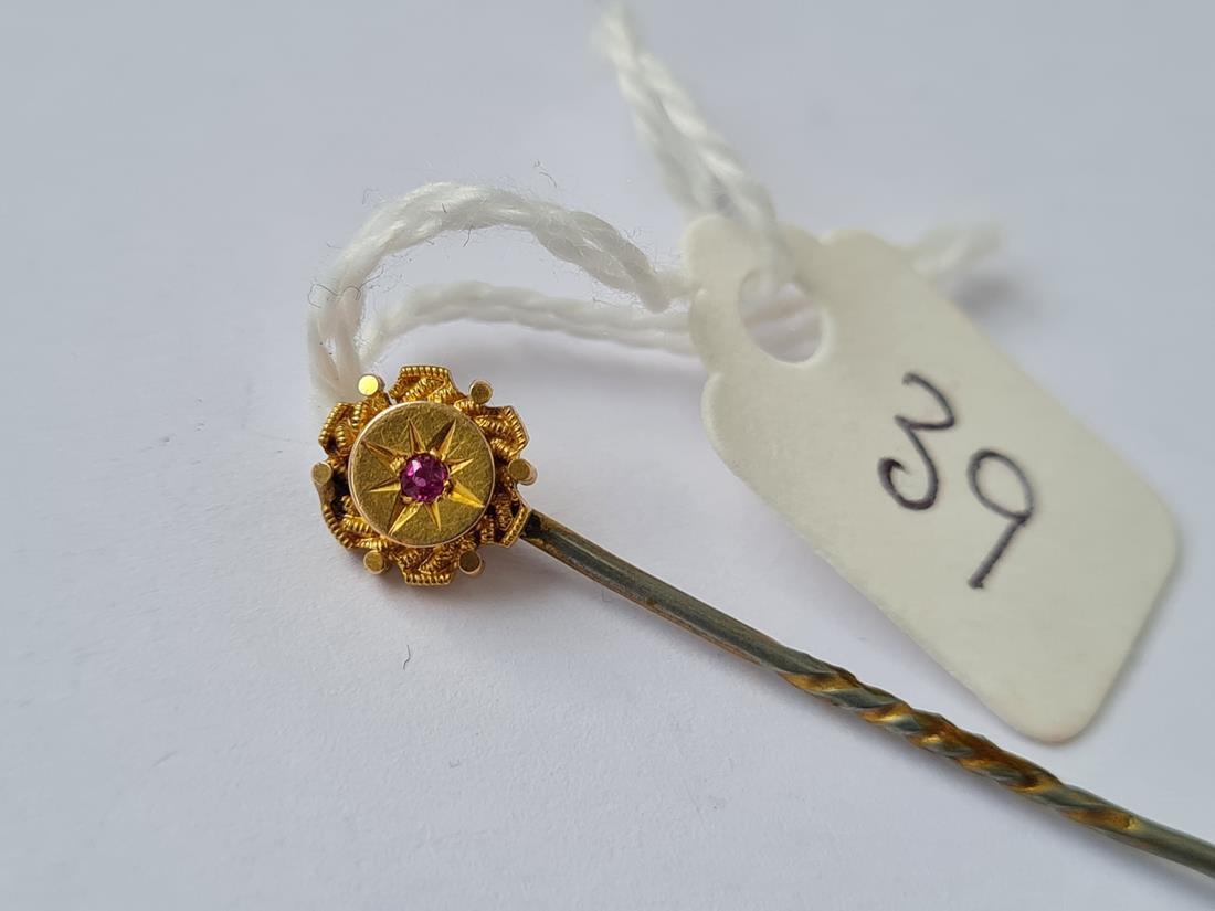 Ruby and gold set stick pin