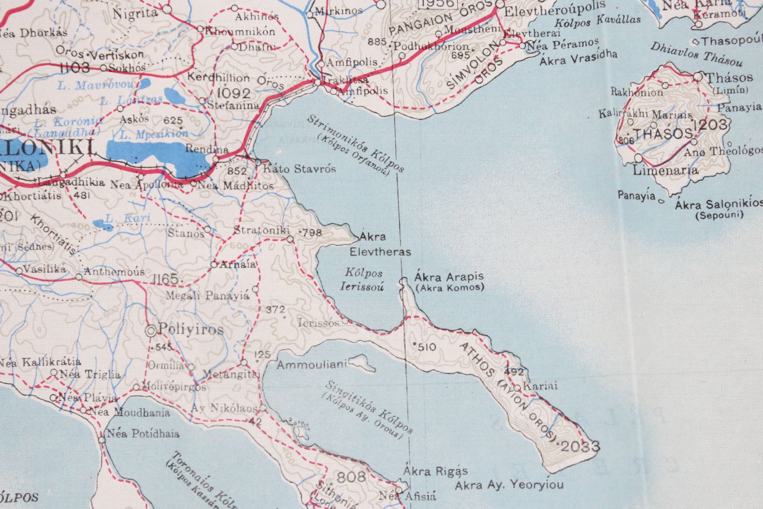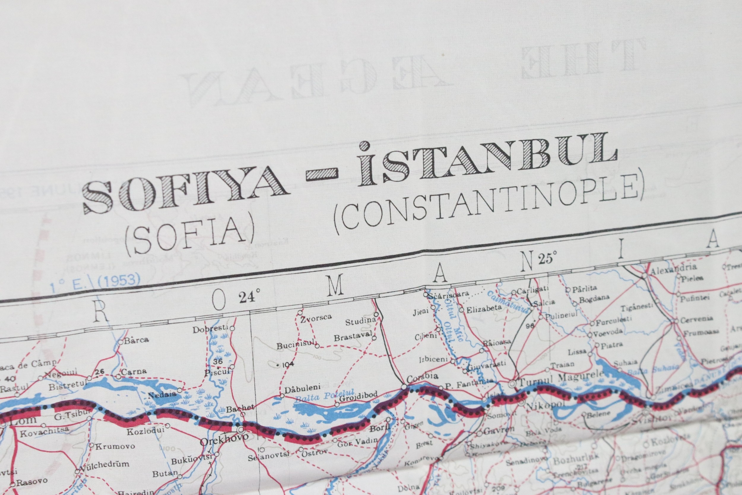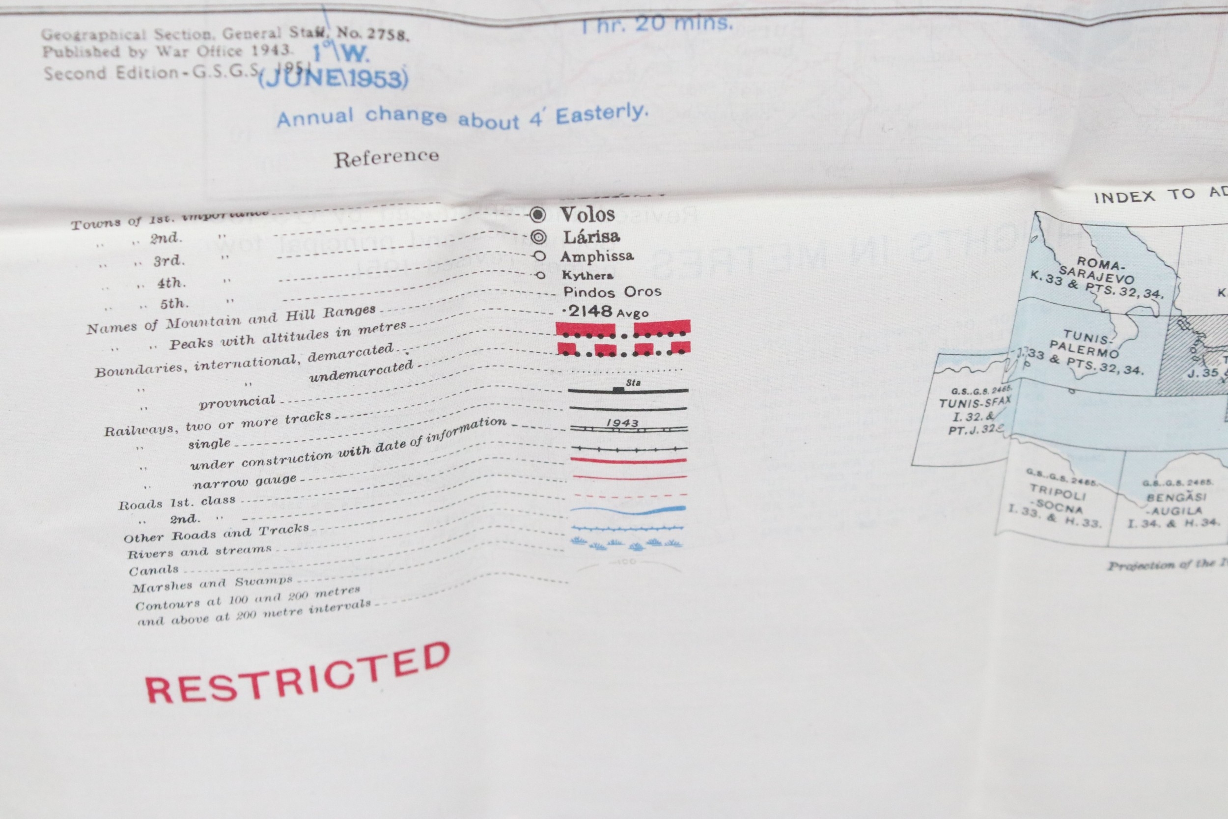 A Royal Air Force / RAF silk escape map covering Agean Sea, Greek Islands, Corfu, Rhodes, Crete, Zante, Santorini, Athens, Turkey, Albania (1)