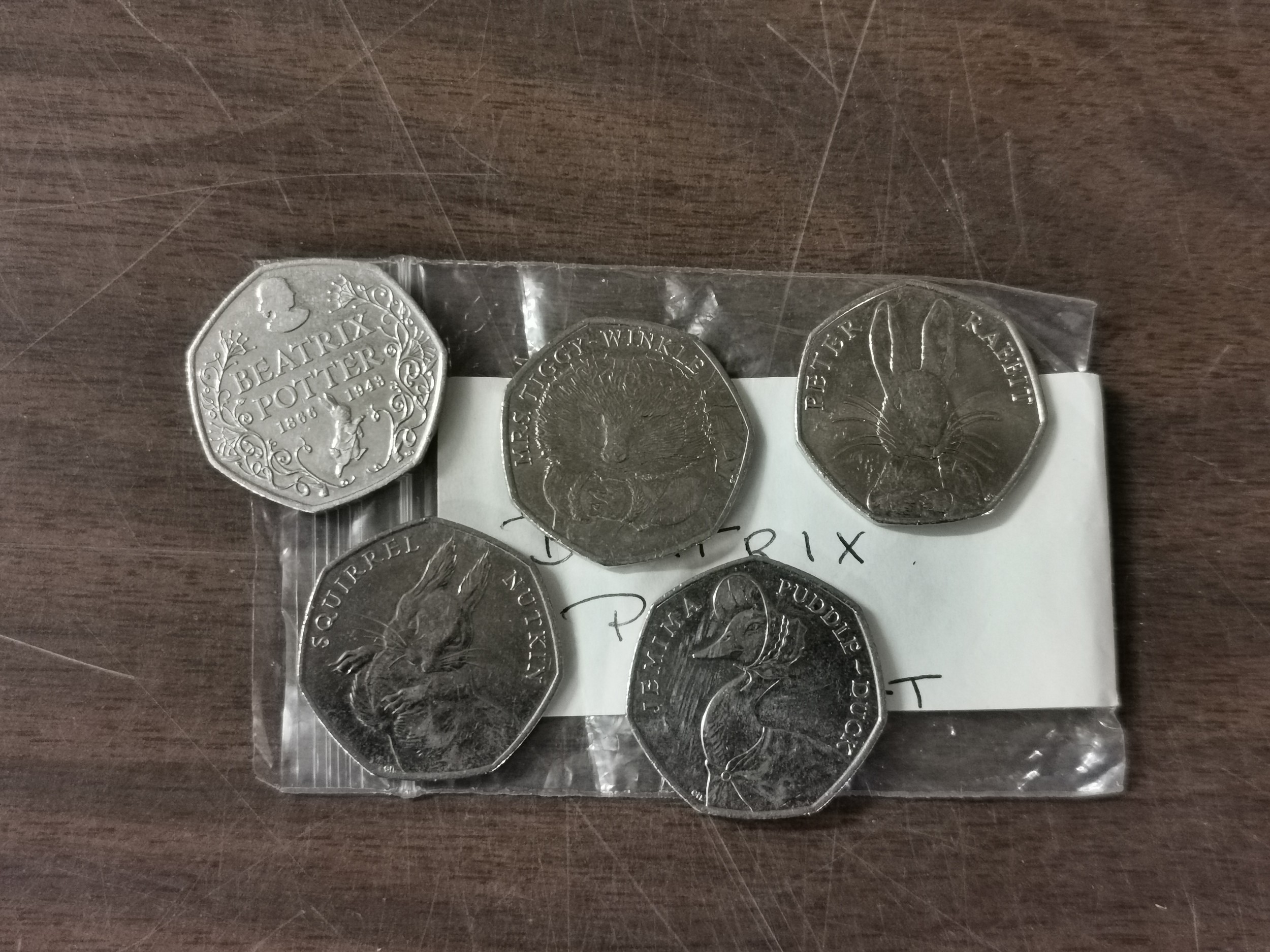 Full set of 5 x 2016 Beatrix Potter circulated 50p coins