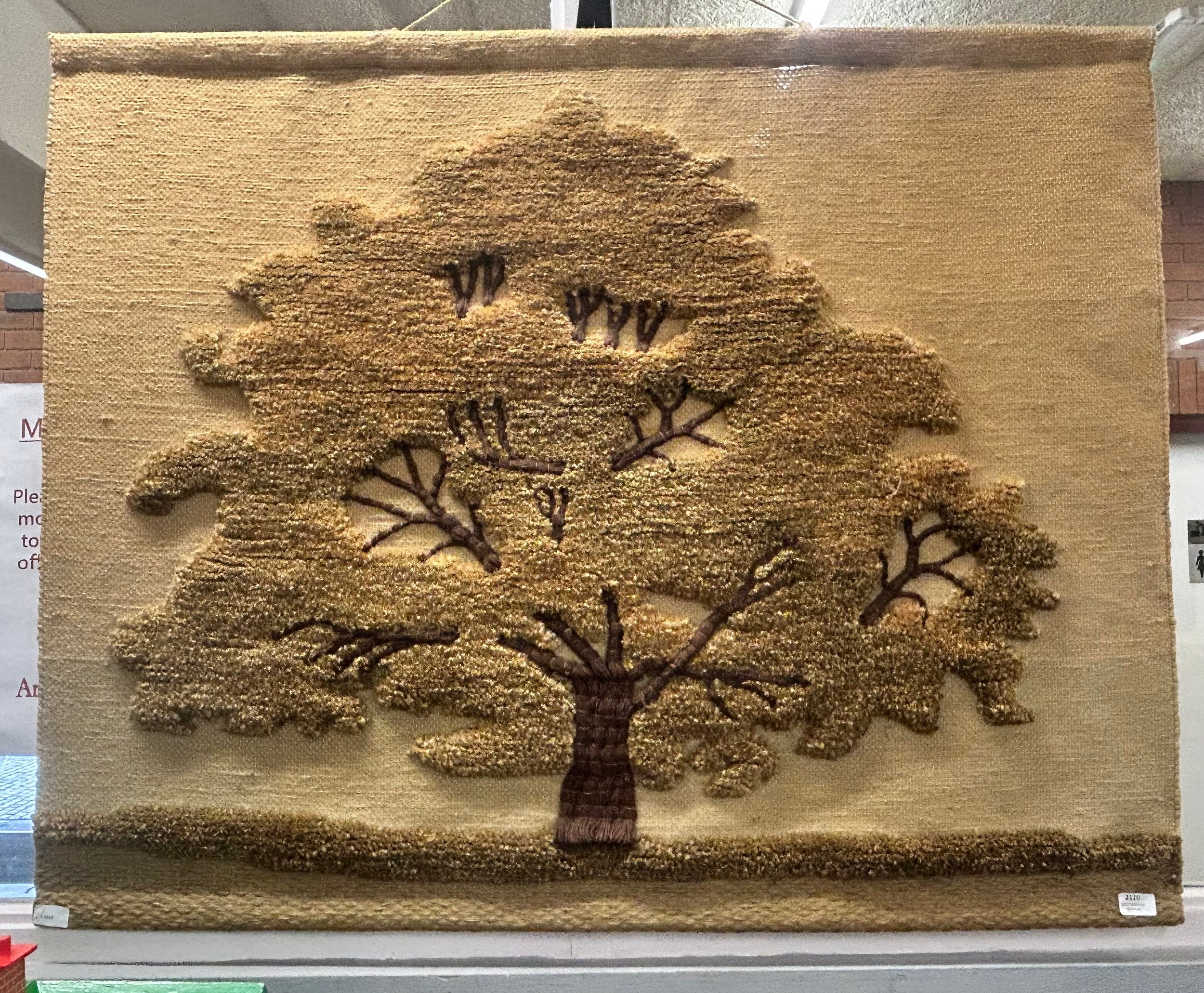 A rugwork wall hanging depicting an oak tree, Major Oak, 120cm wide