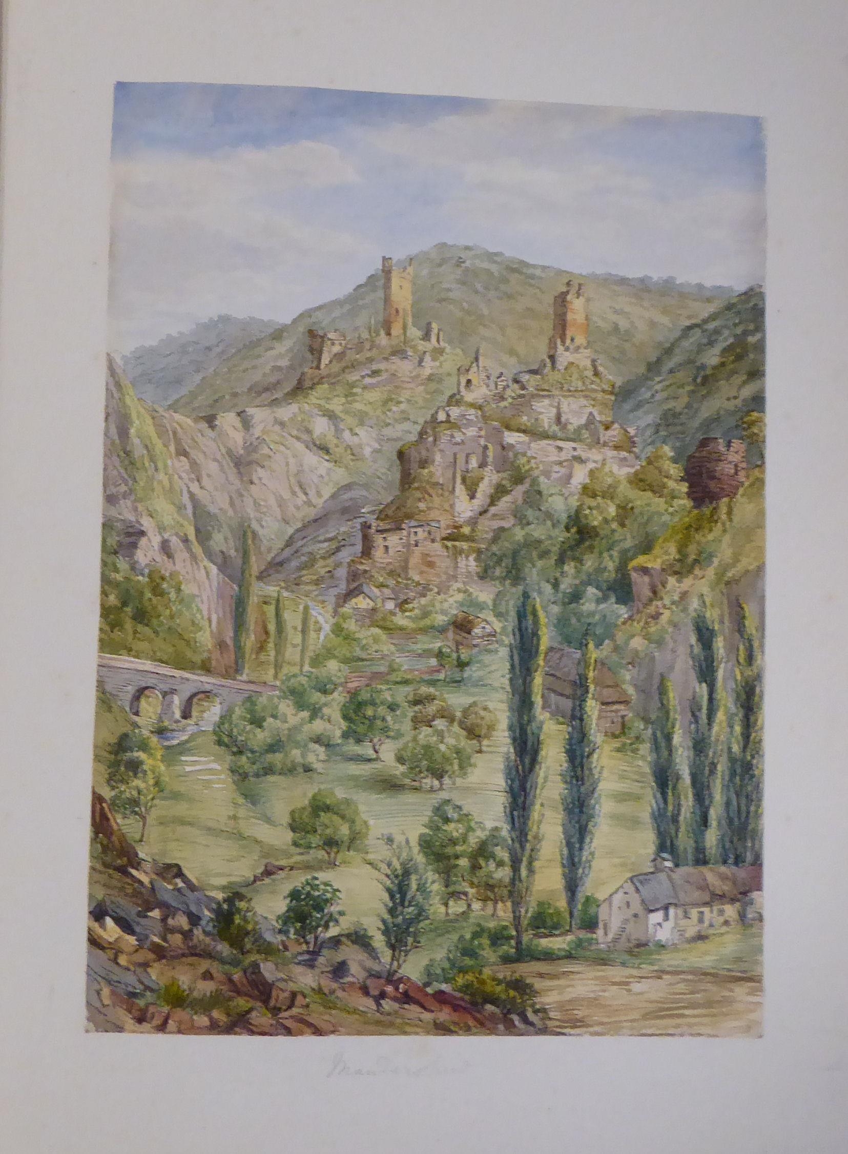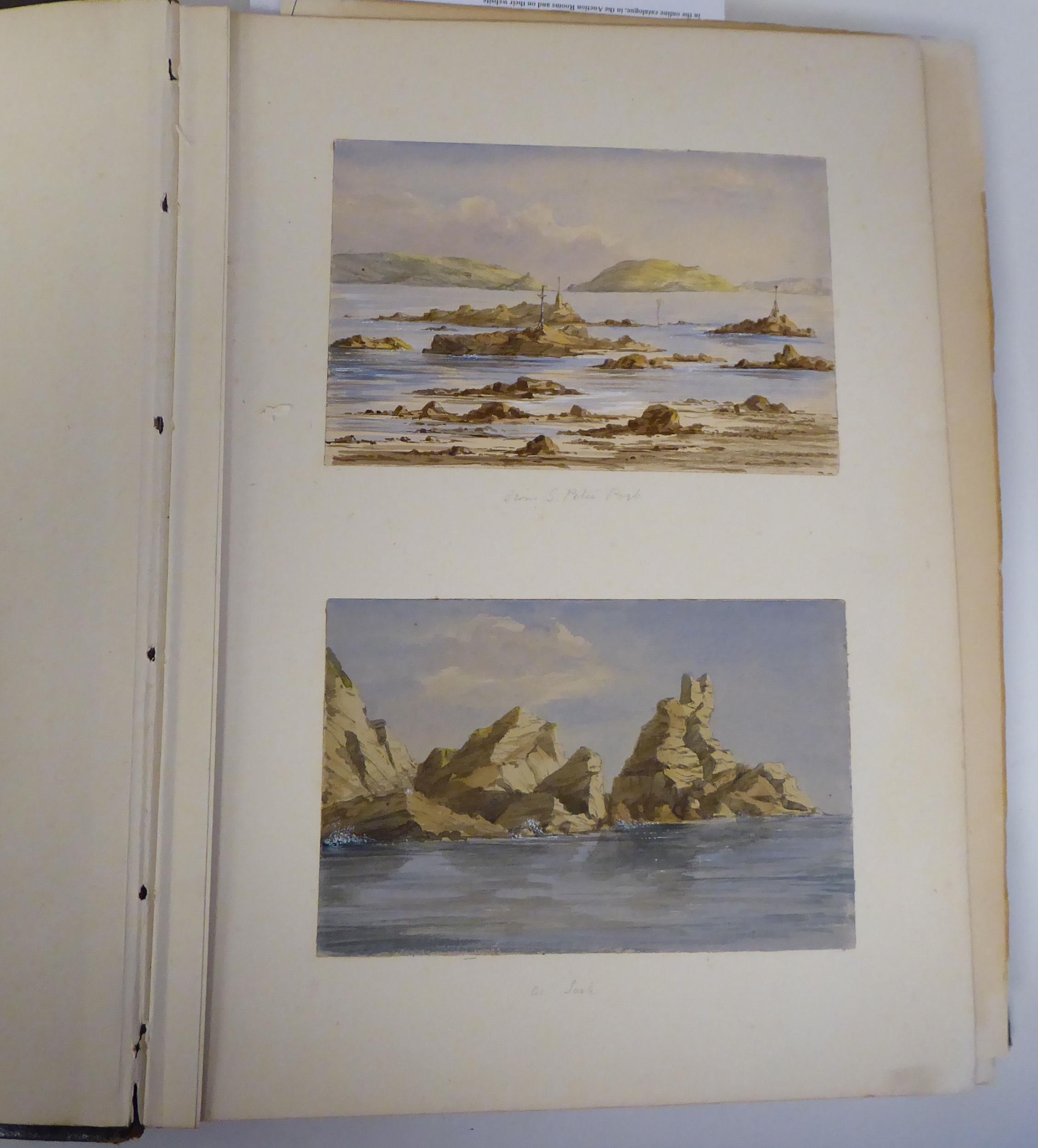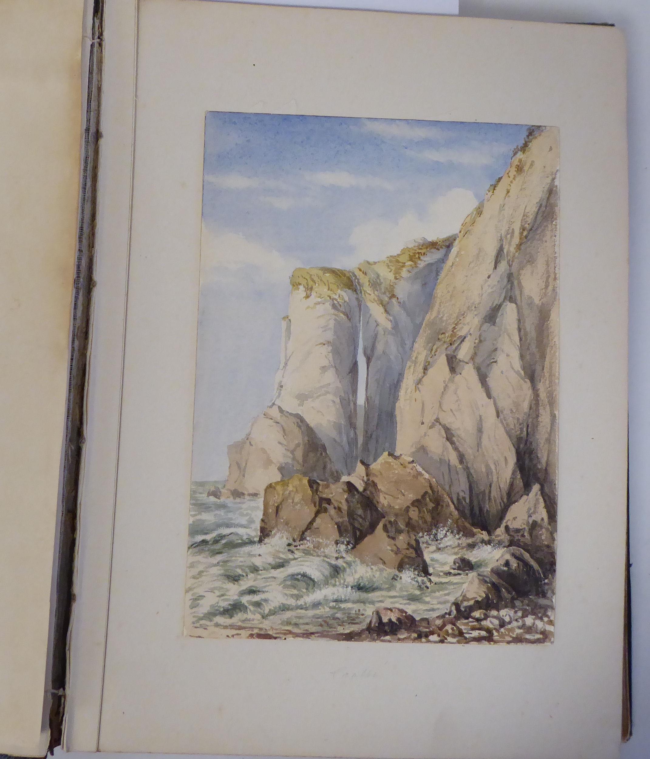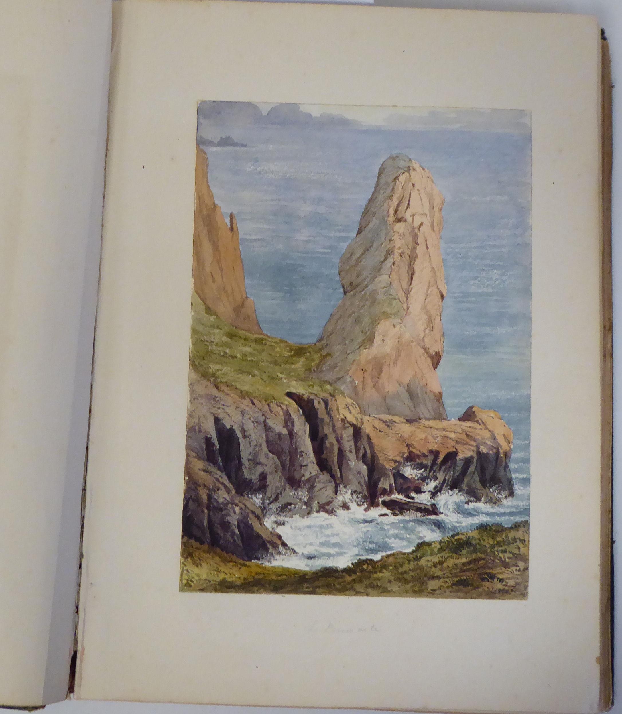 An 1870s watercolour album, featuring scenic landmarks, locations around small islands of Britain and Southern Europe