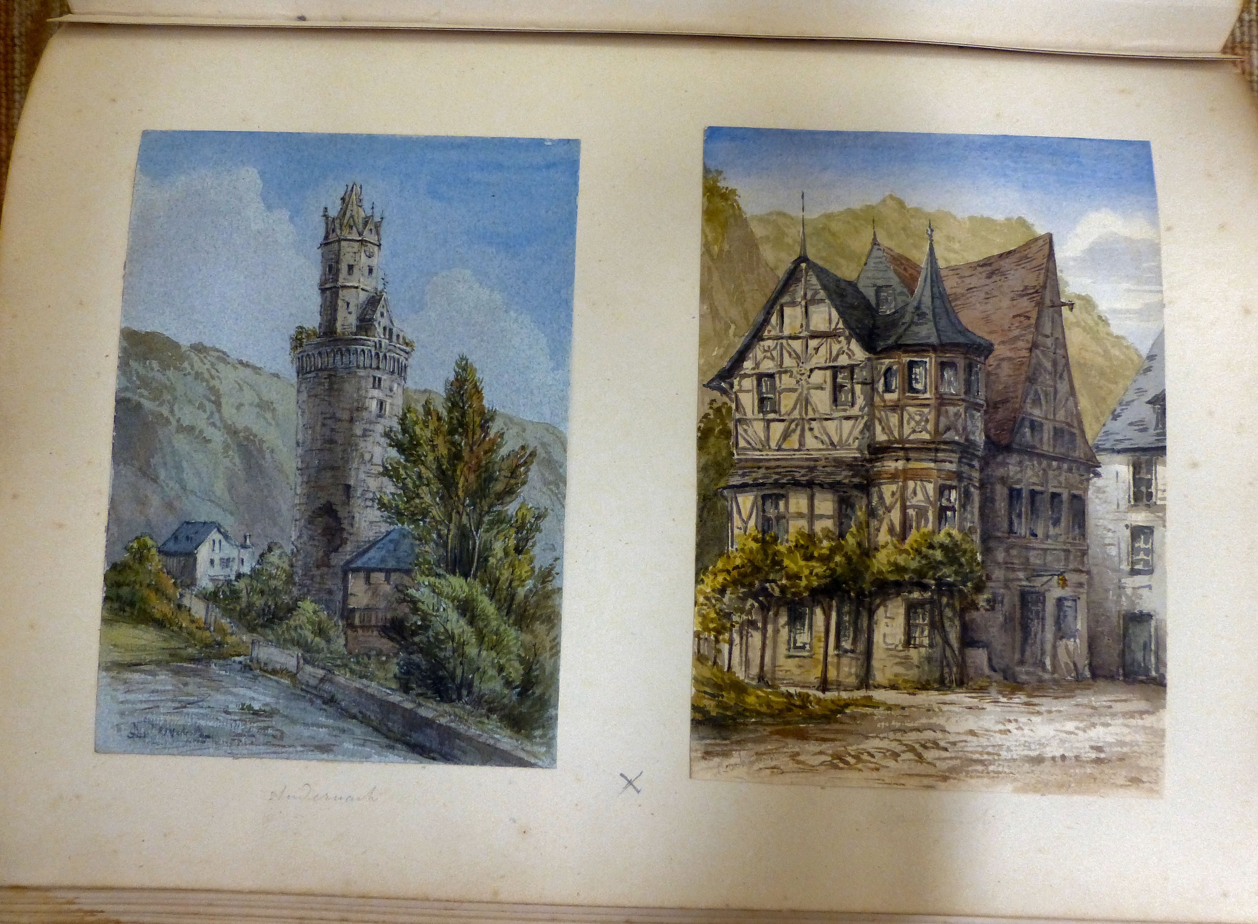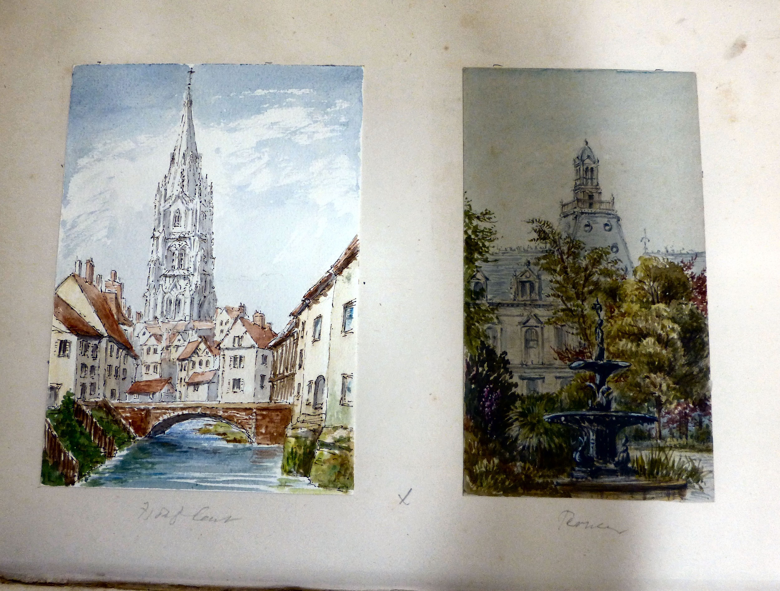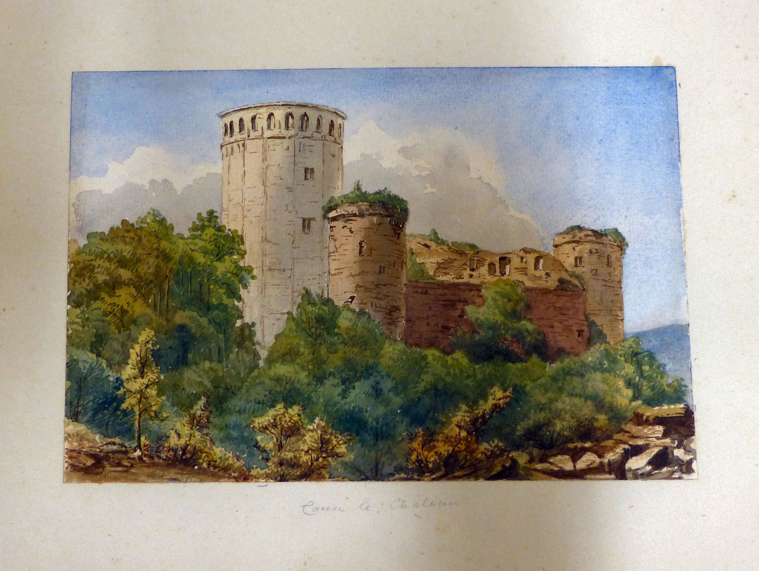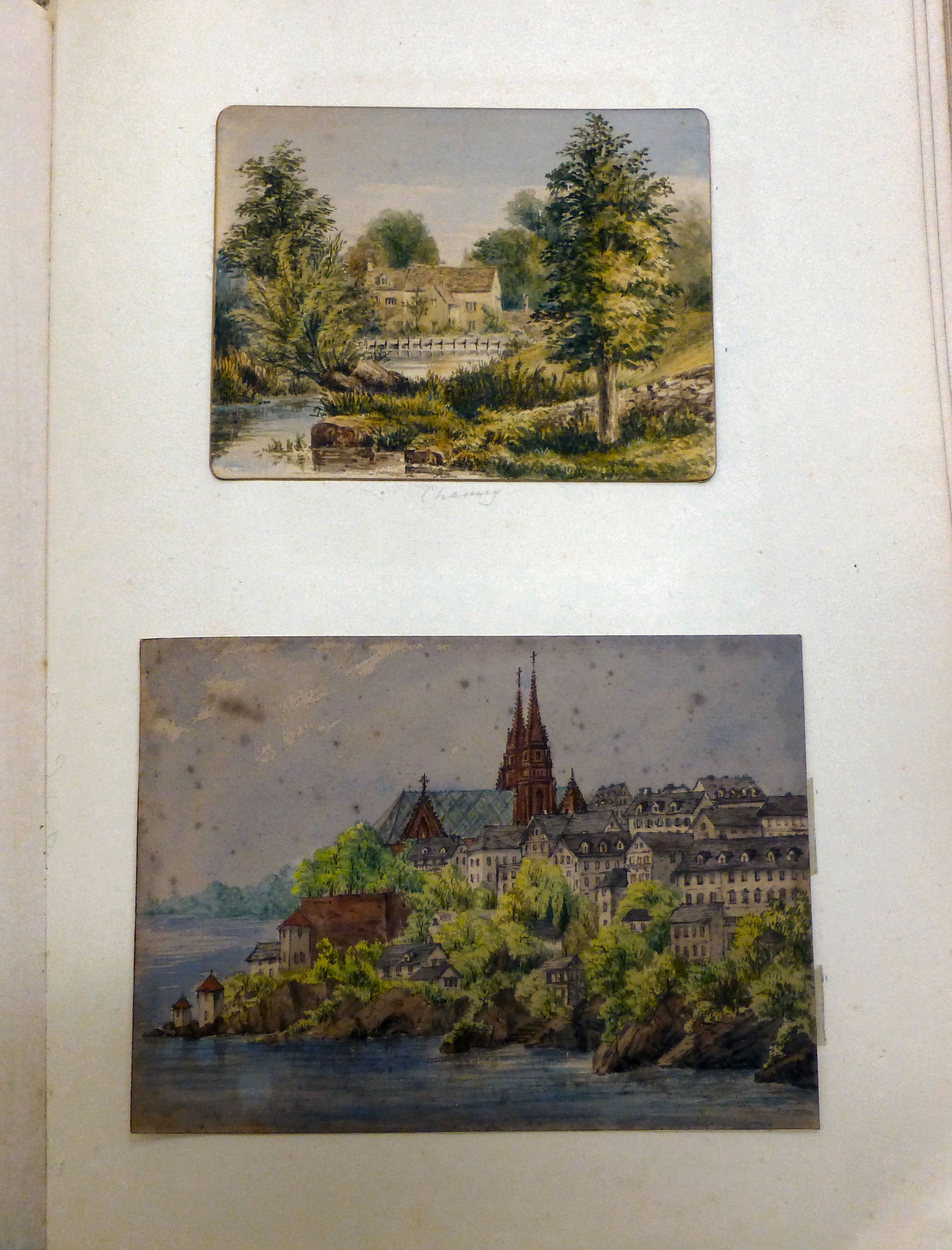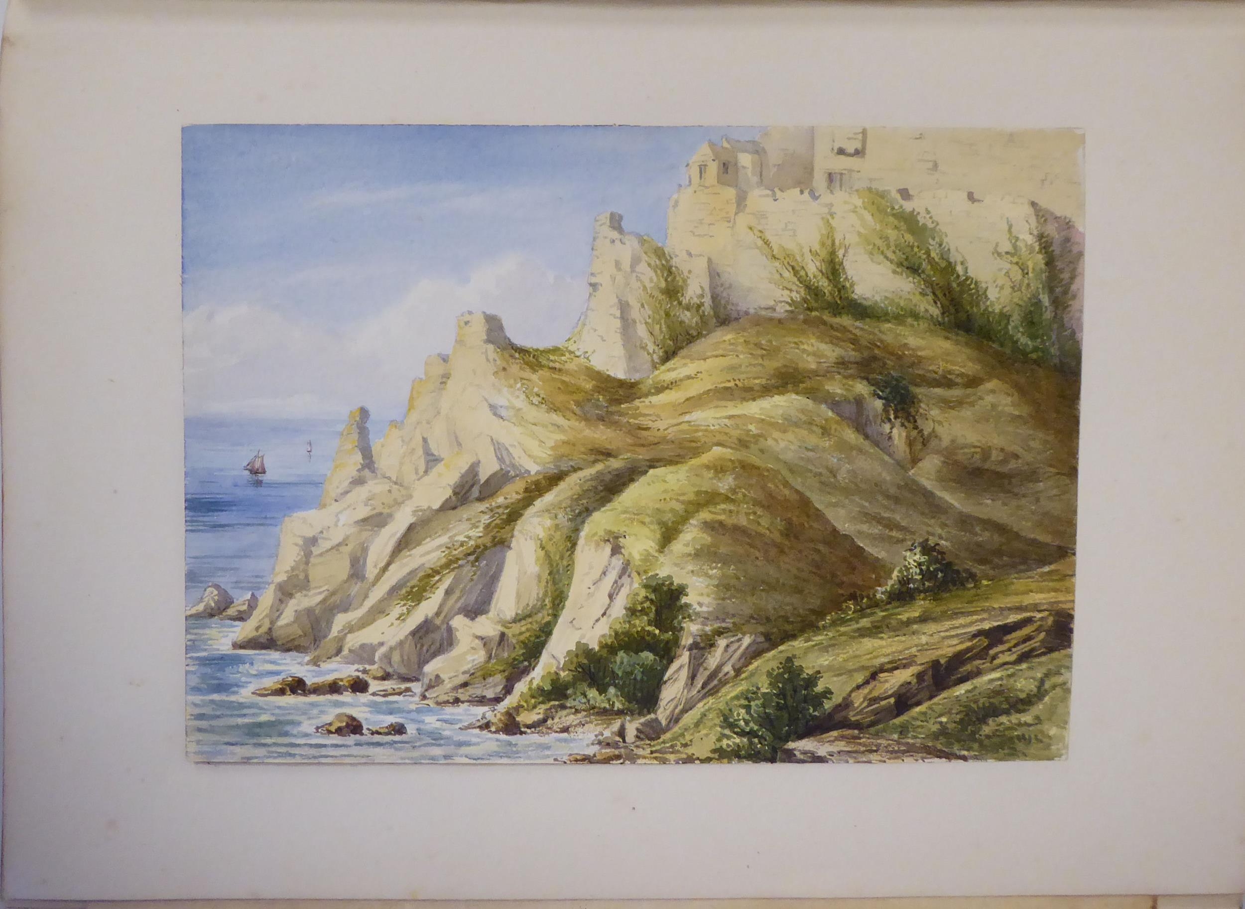 An 1870s watercolour album, featuring scenic landmarks, locations around small islands of Britain and Southern Europe