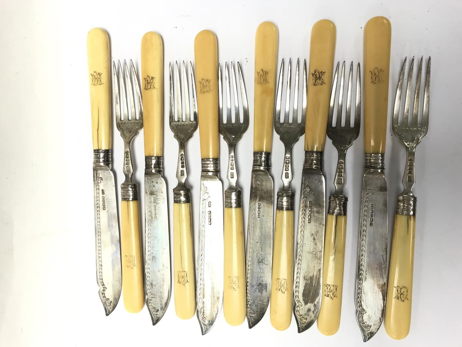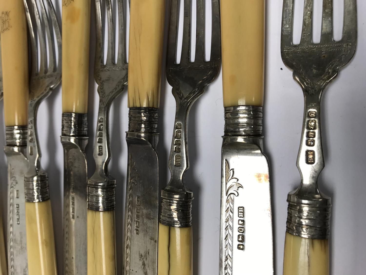 A 6 setting Hallmarked silver and ivory fish set with marks for Harrison brothers & Howson, Sheffield circa 1885.