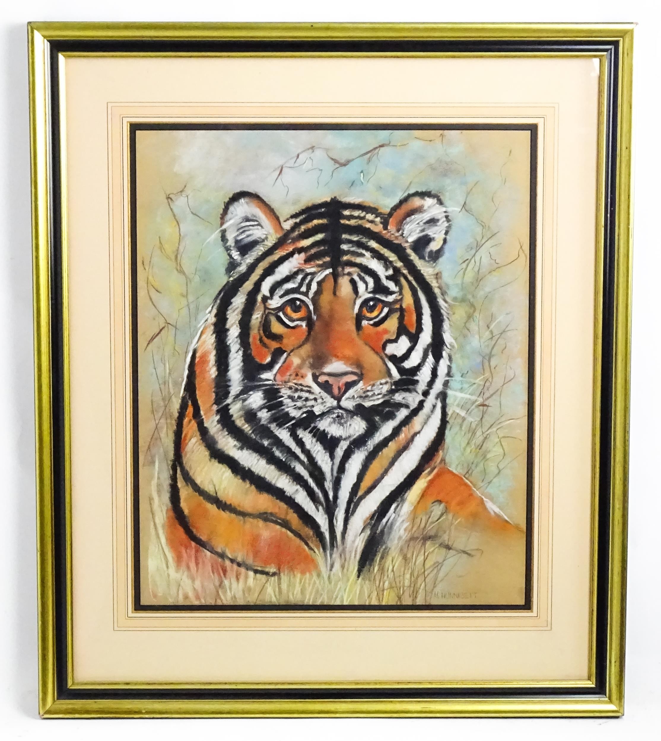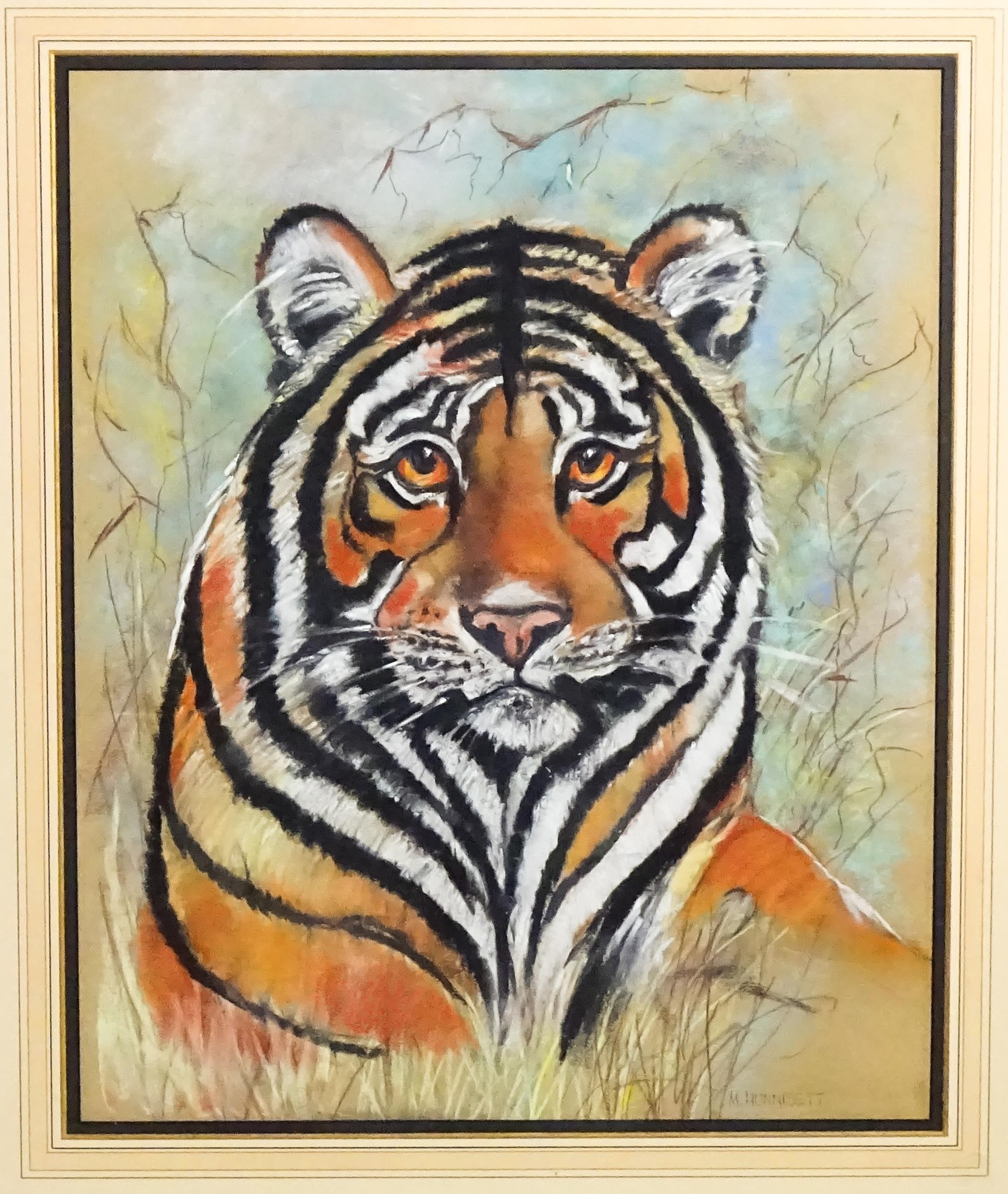 M. Hunnisett, 20th century, Pastels on paper, A study of a tiger. Signed lower right. Approx. 19 3/4" x 16 3/4"