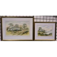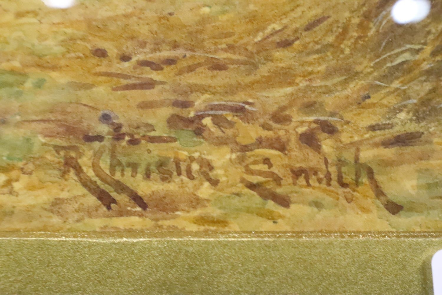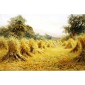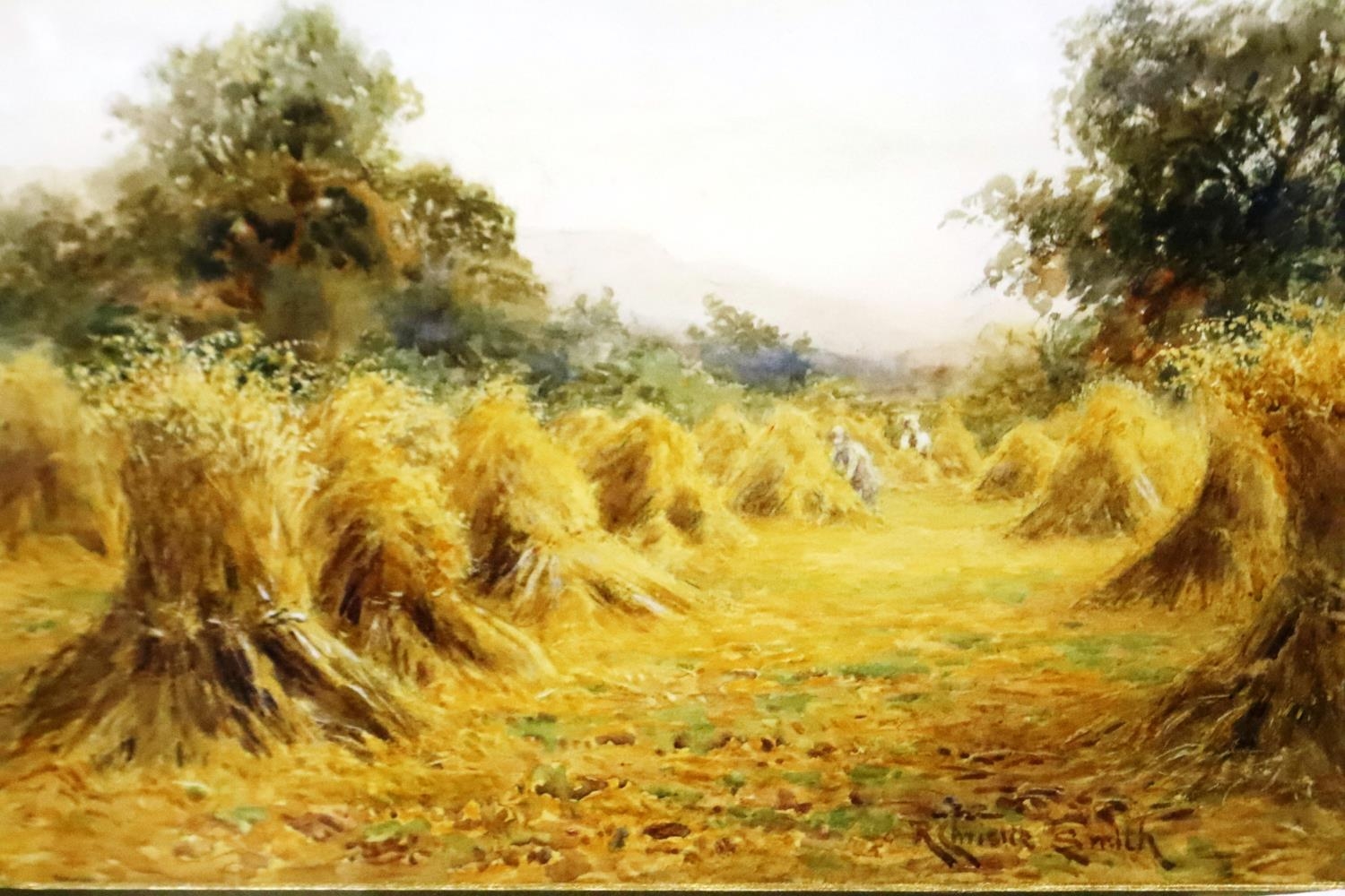R Christie Smith (fl. 1924-1927): watercolour, haystacks, 33 x 21 cm. Not available for in-house P&P
