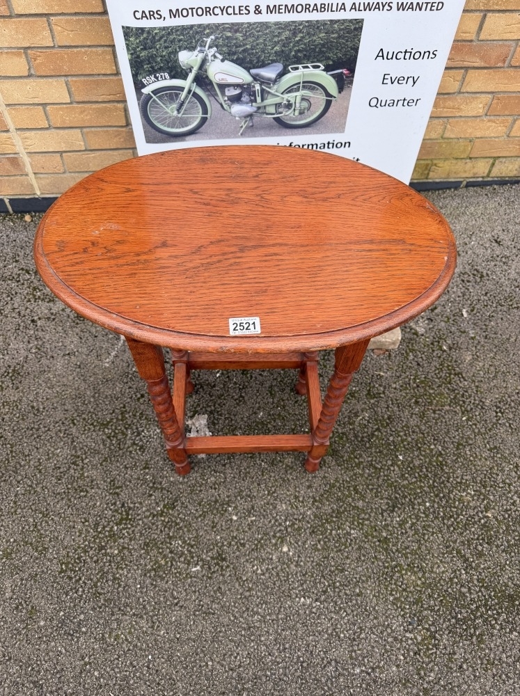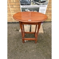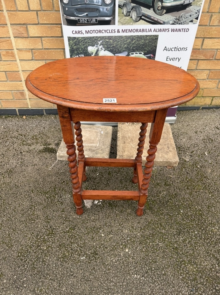 An antique occasional table with oval top & barley twist legs