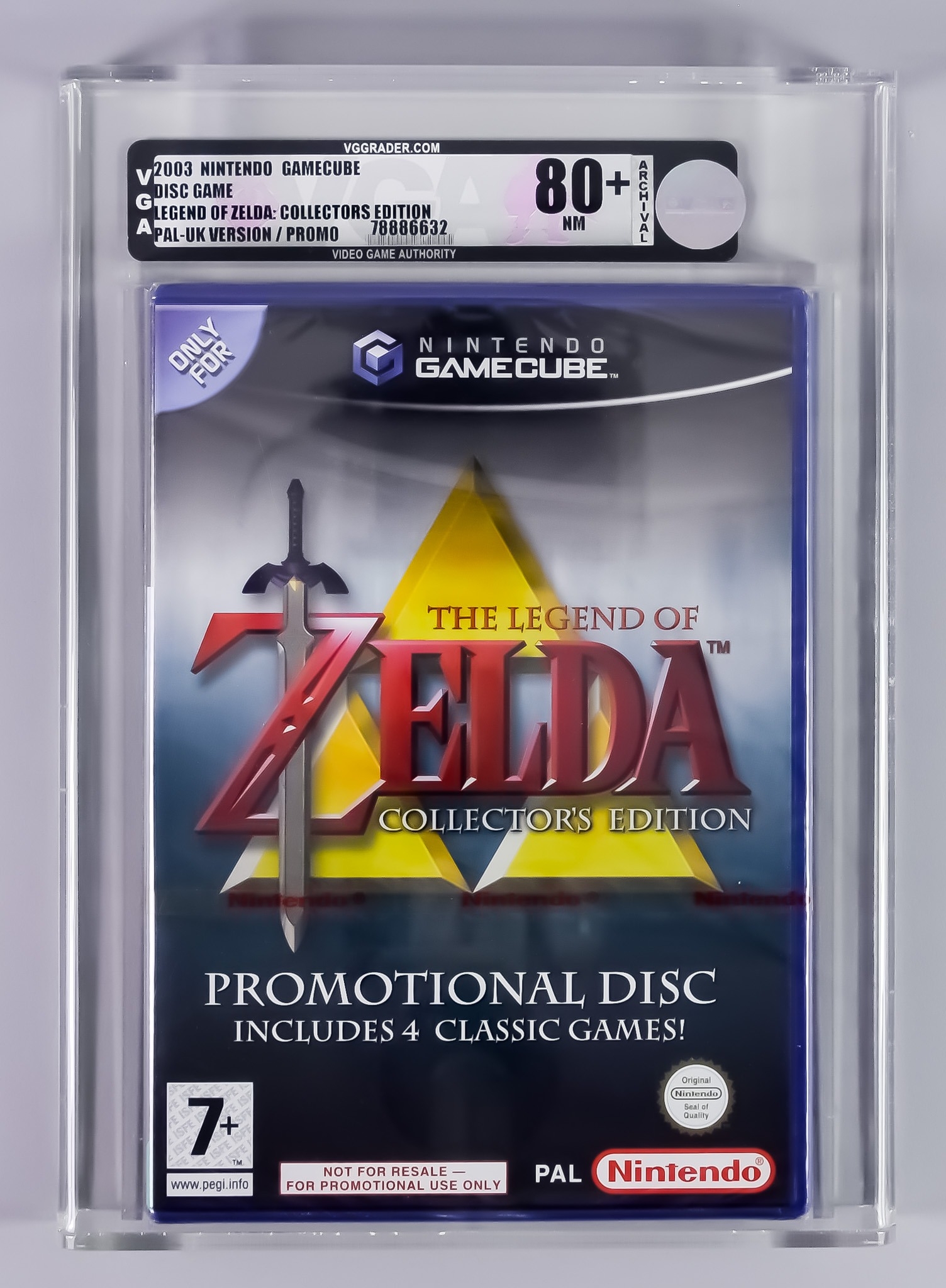 2003 Nintendo GameCube – The Legend Of Zelda Collectors Edition – PAL/UK Version Red Label Promotional Game VGA 80+/NM, with iconic Nintendo red strip seal and in rigid Perspex case supplied by VGA at the time of grading