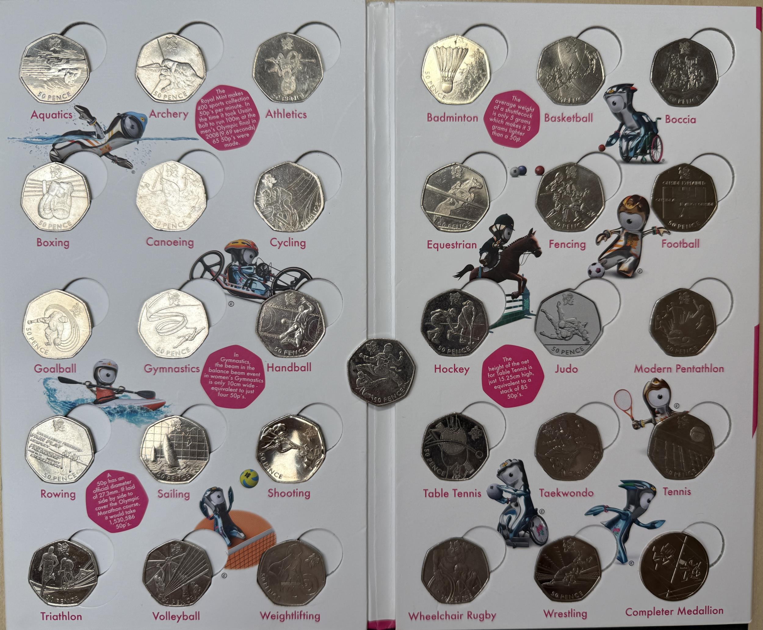UK 2012 Olympics 50p coin set in presentation folder (missing Judo, and a duplicate of Taekwondo) including Completer.