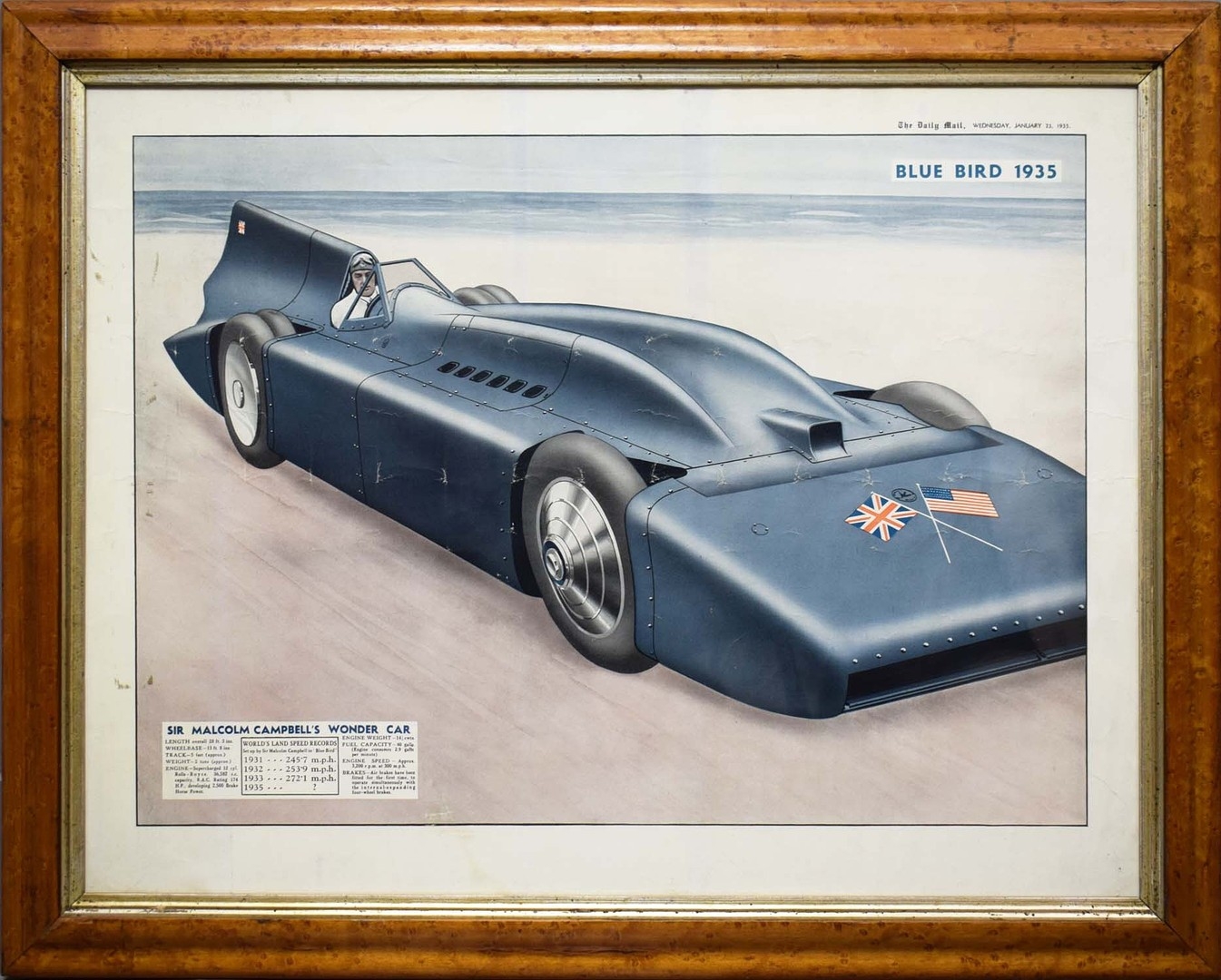BLUE BIRD 1935. colour lithograph on paper, 57cm x 71cm, framed.