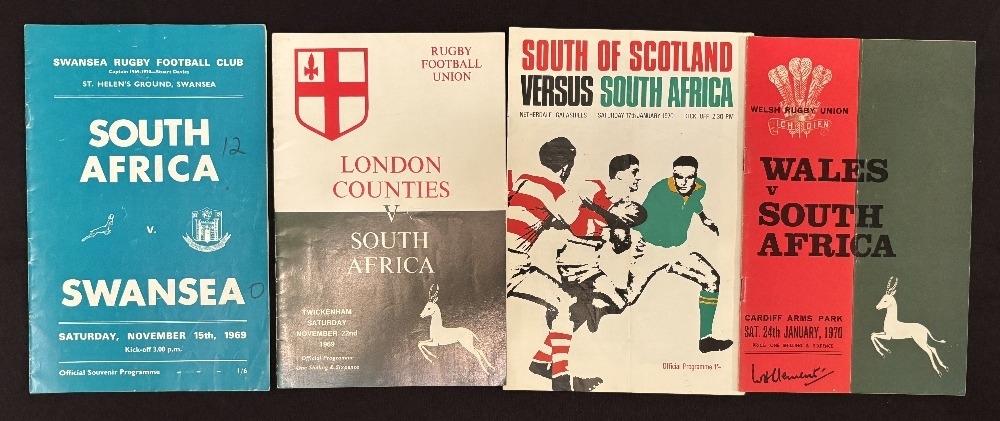 1969-70 S Africa in the UK Rugby Programmes (4): v Swansea, London Counties, S of Scotland and Wales. VG
