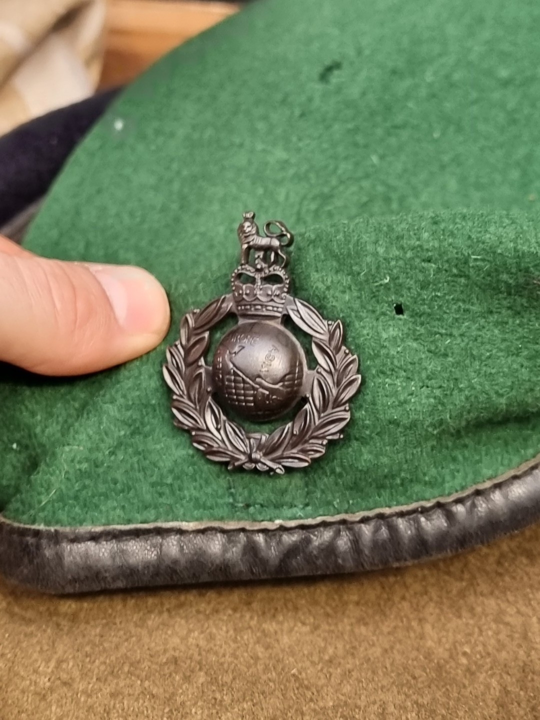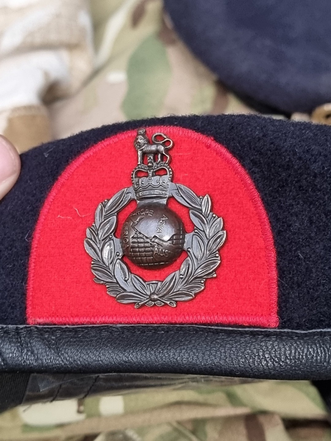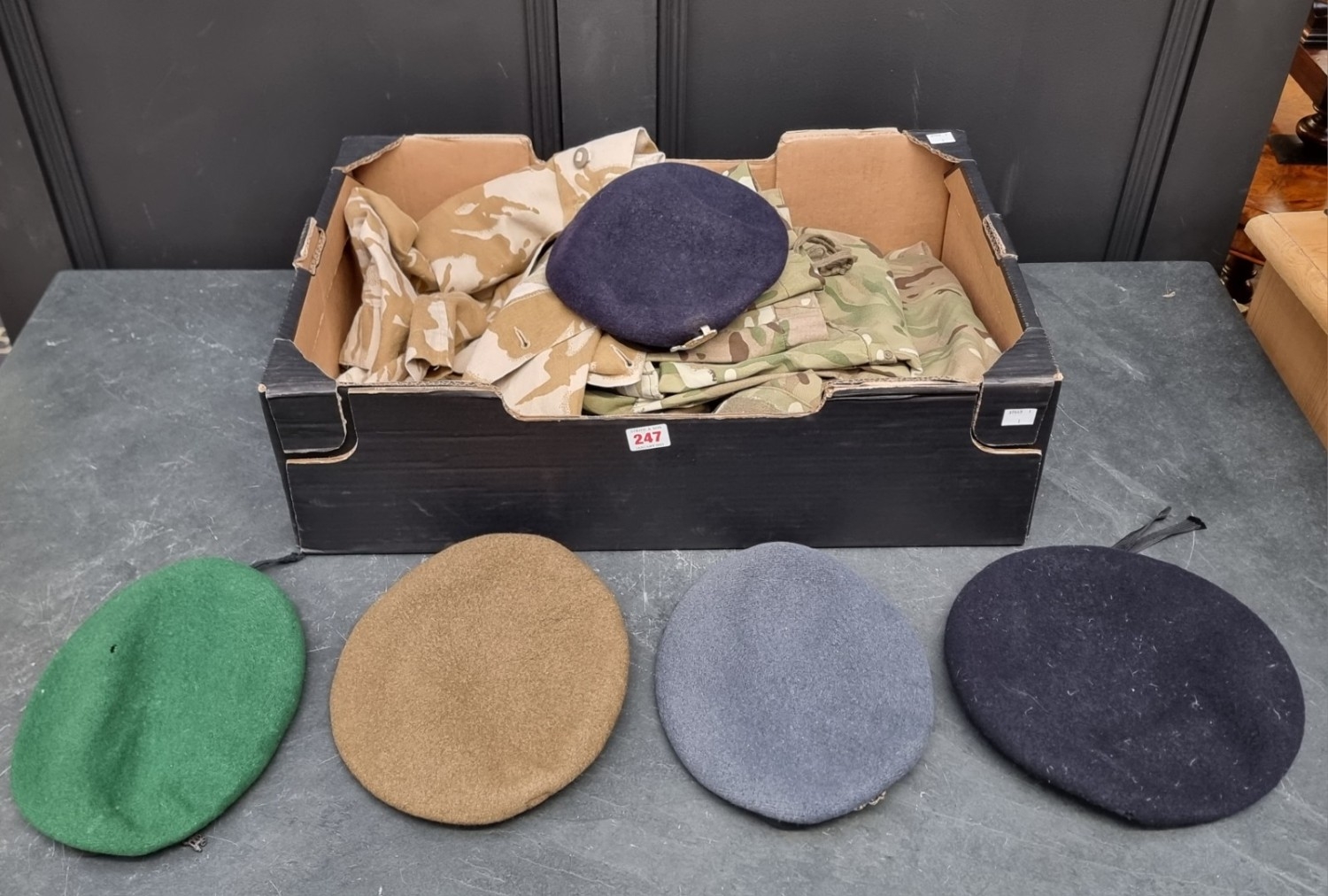 Five berets; together with two camouflage shirts; and two pairs of trousers.