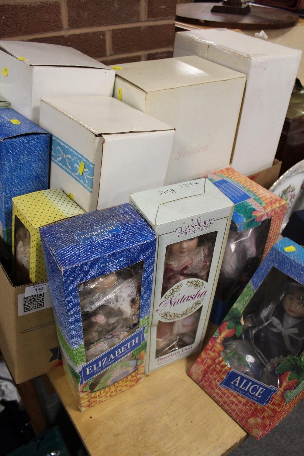 A COLLECTION OF BOXED PORCELAIN HEADED DOLLS TO INCLUDE THE PROMENADE COLLECTION, THE CLASSIQUE COLLECTION ETC. (13)